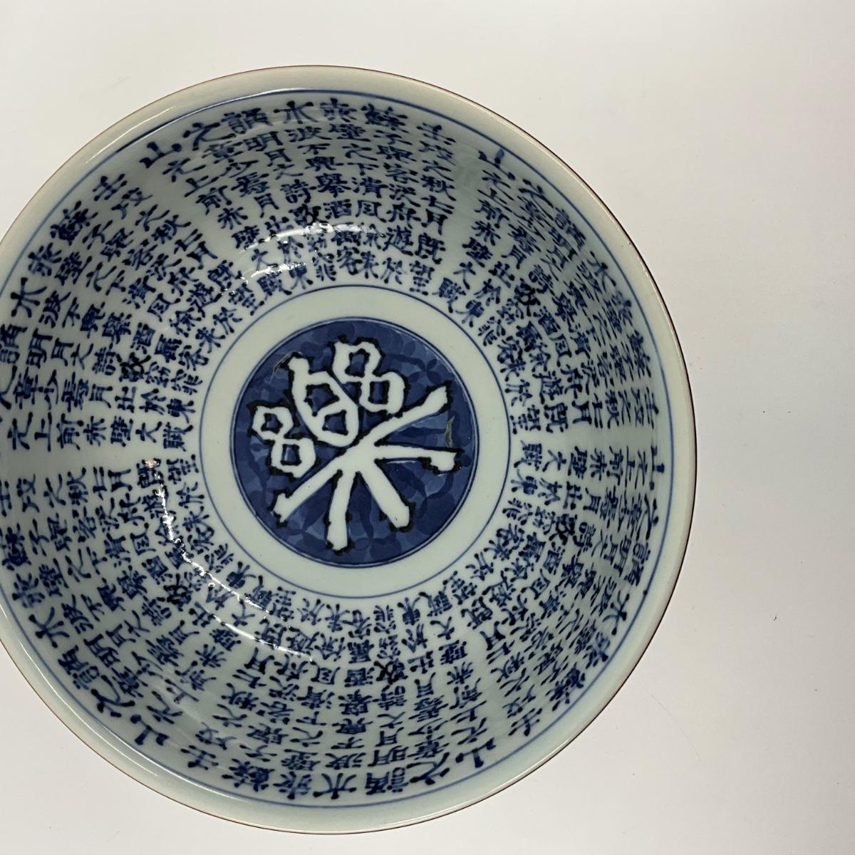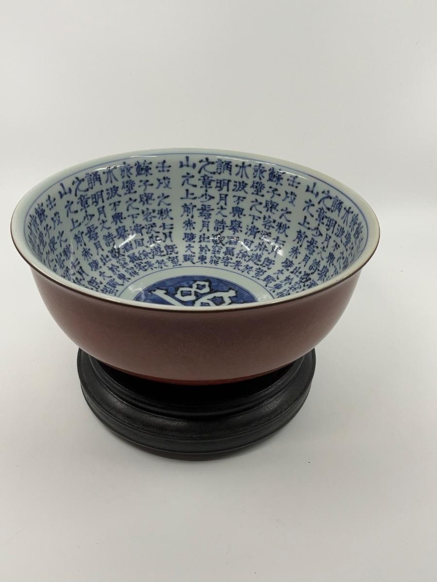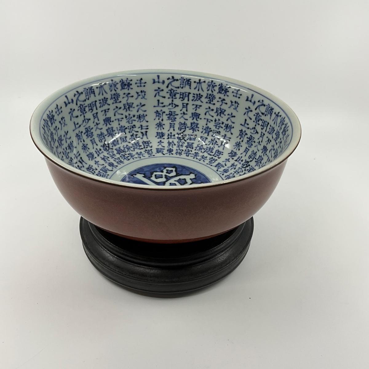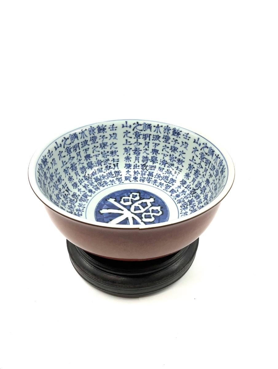 D690 Red Fitz & Floyd Chinese Blue and White Bowl with Stand