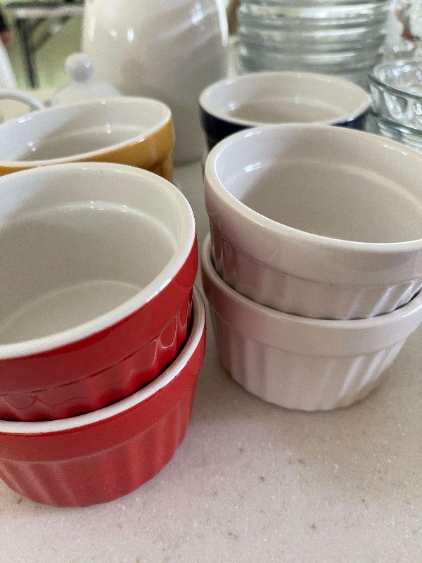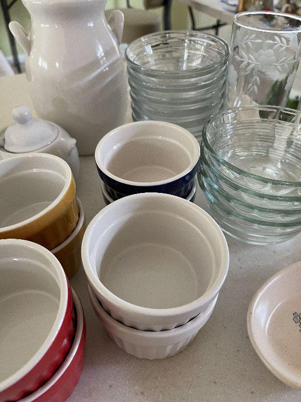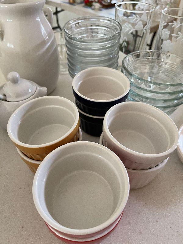 Lot of Ramakins and More. Please review all photos. First photo shows all that is in the lot, unless otherwhise noted. All items sold AS IS-WHERE IS. Please bring help for larger lots, and boxes or bags to remove your lots.