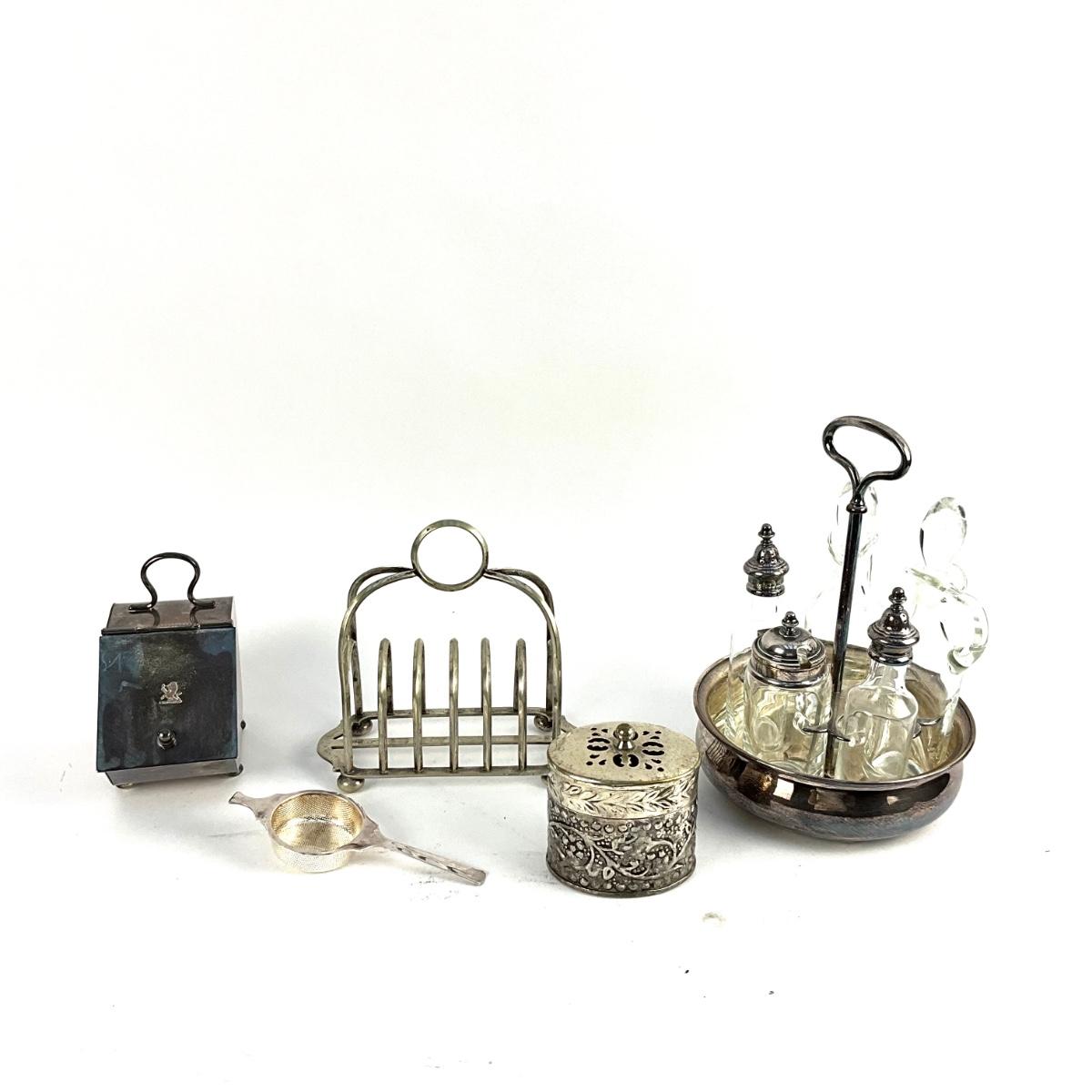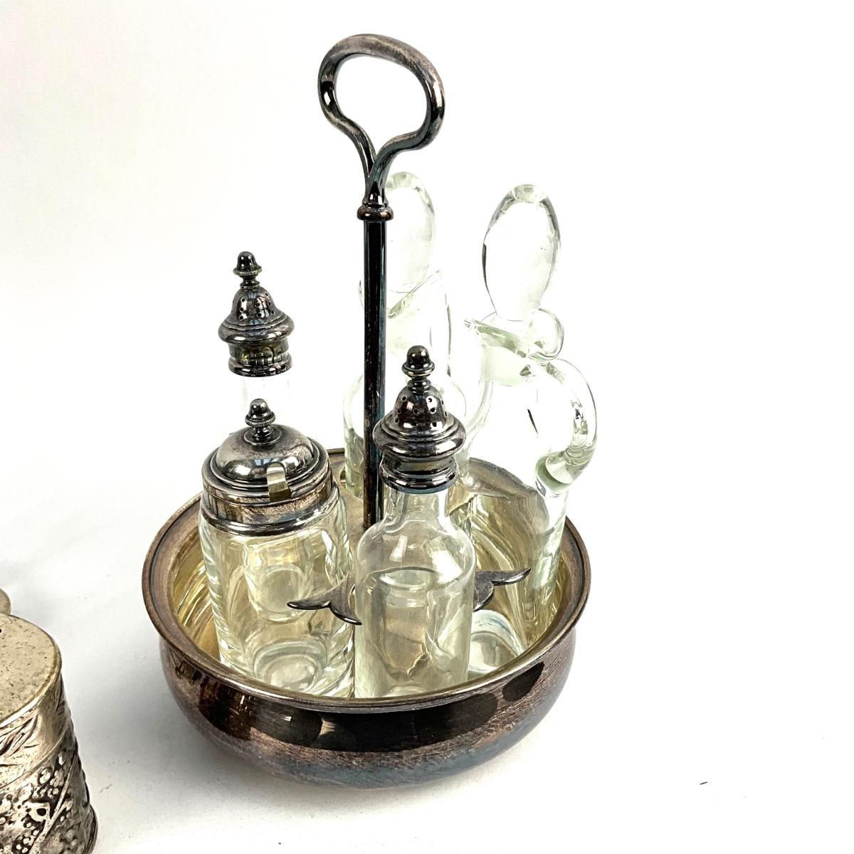 D727 Lot of Silverplate Castor Set and more