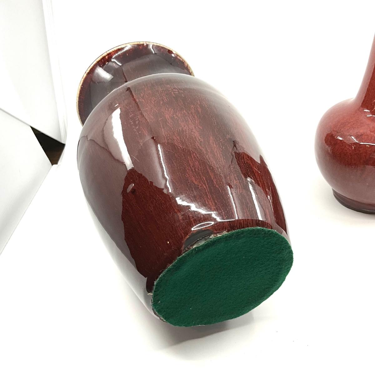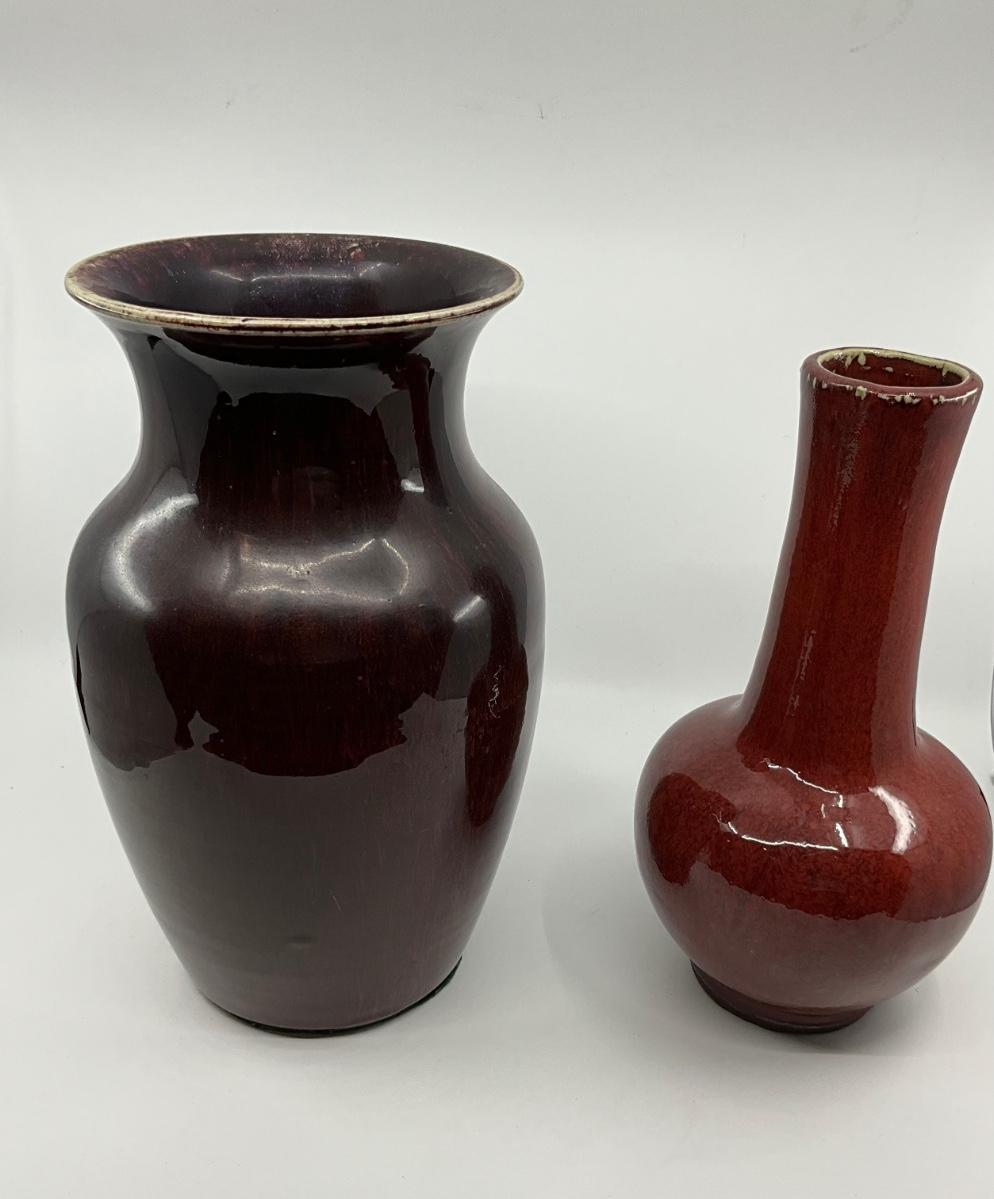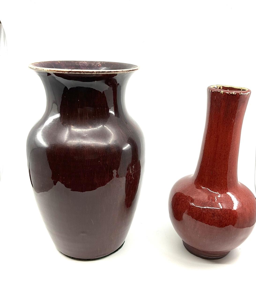 D730 Pair of Vintage Red Glaze Pottery Vases