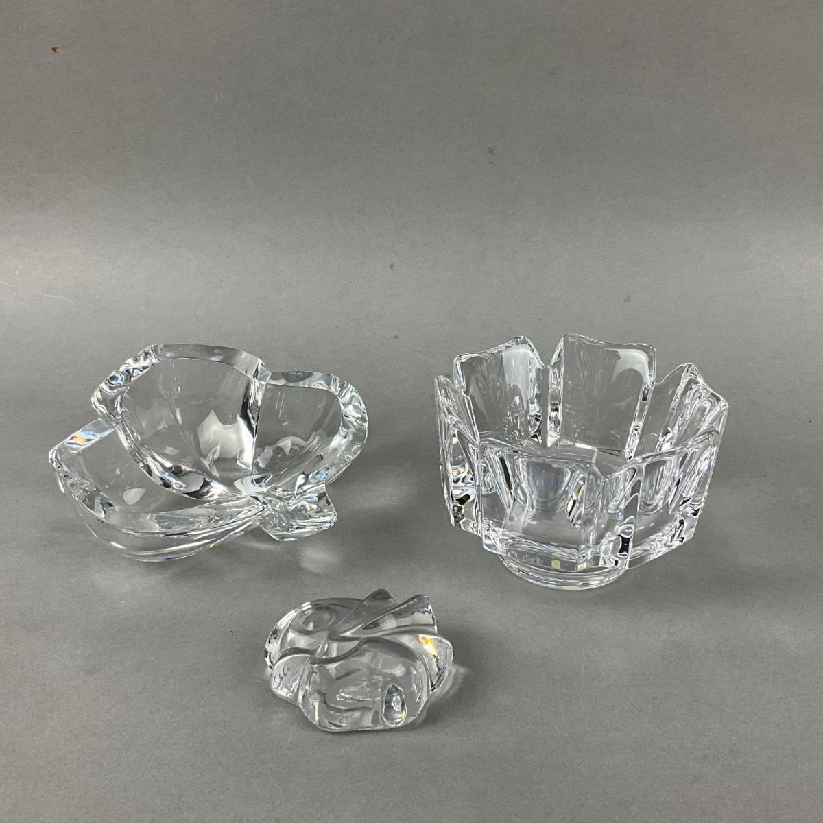D745 Pair of Orrefors Crystal Signed Bowls and Bird Paperweight