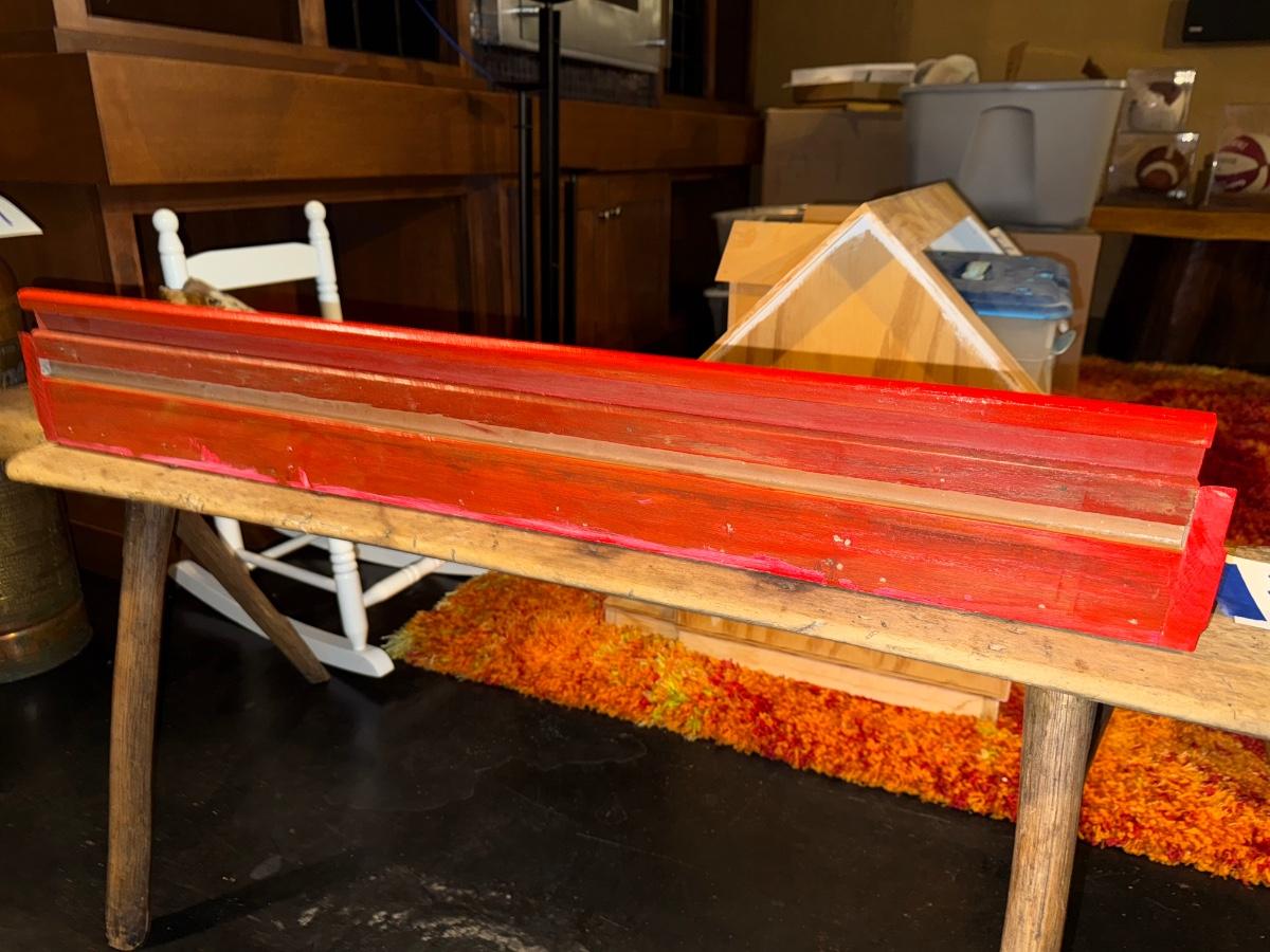 See photos for condition of paint job on the orange shelf