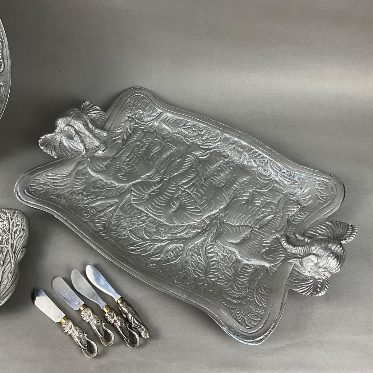 Large tray with elephant head handles measuring 18.5" wide x 12" deep