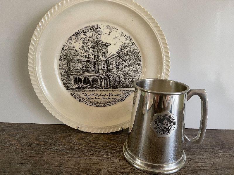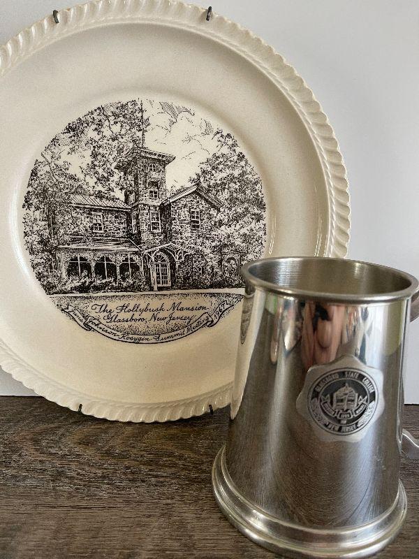 Glassboro State beer stein and Hollybush Mansion plate.. Please review all photos. First photo shows all that is in the lot, unless otherwhise noted. All items sold AS IS-WHERE IS. Please bring help for larger lots, and boxes or bags to remove your lots.