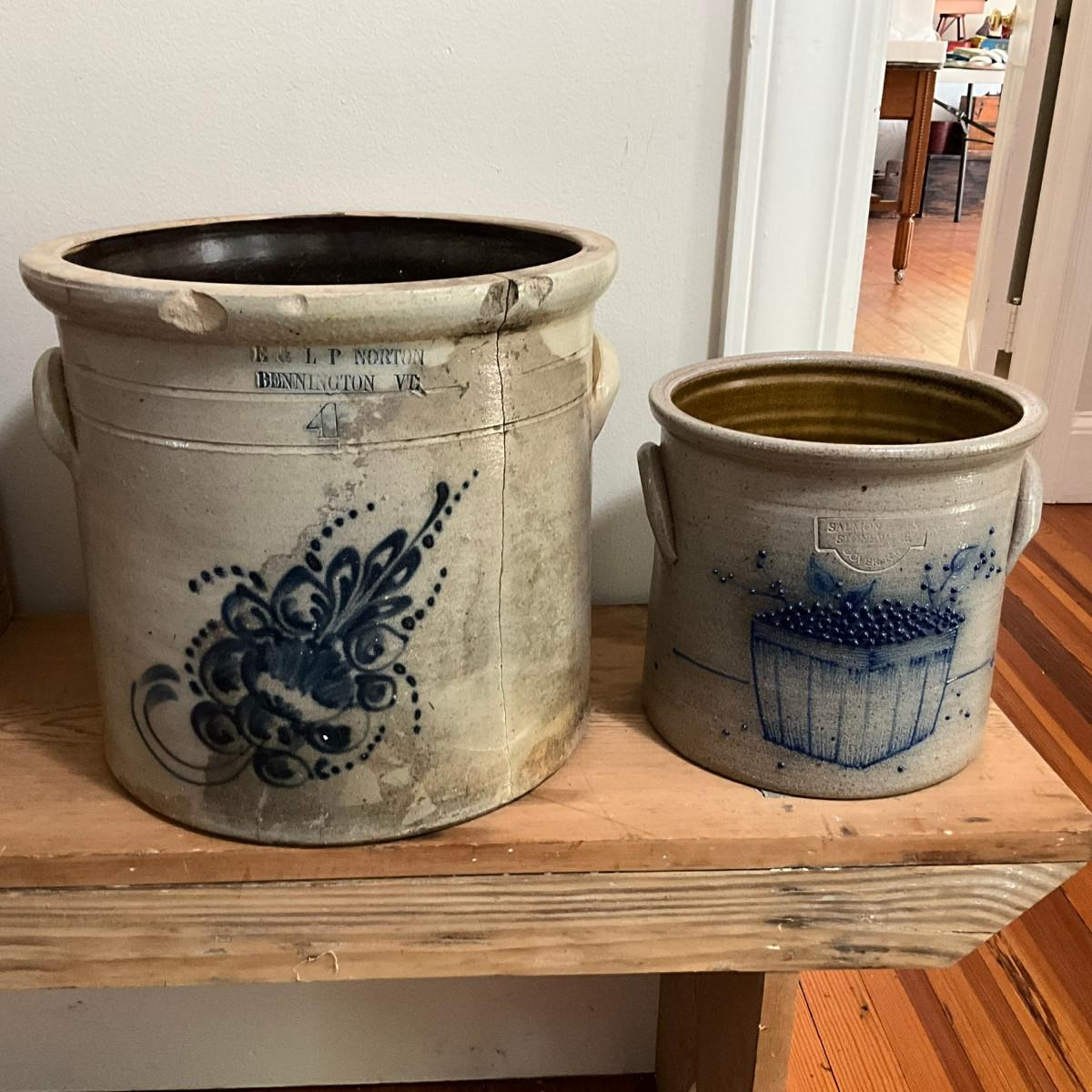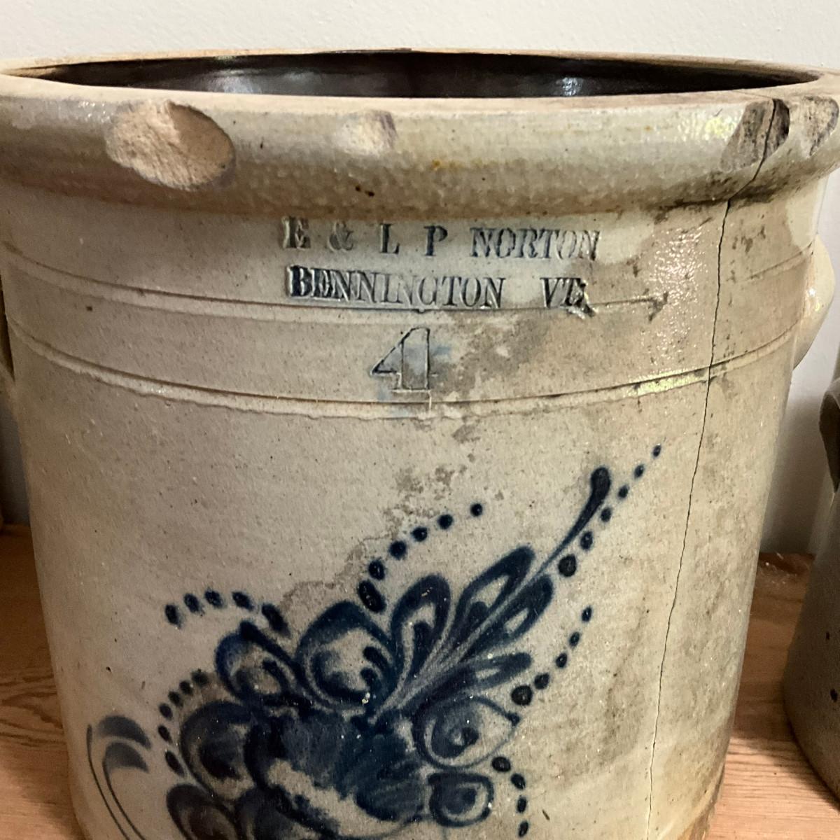 D793 Large Benninton Crock (As-Is) With Salmon Stoneware Crock