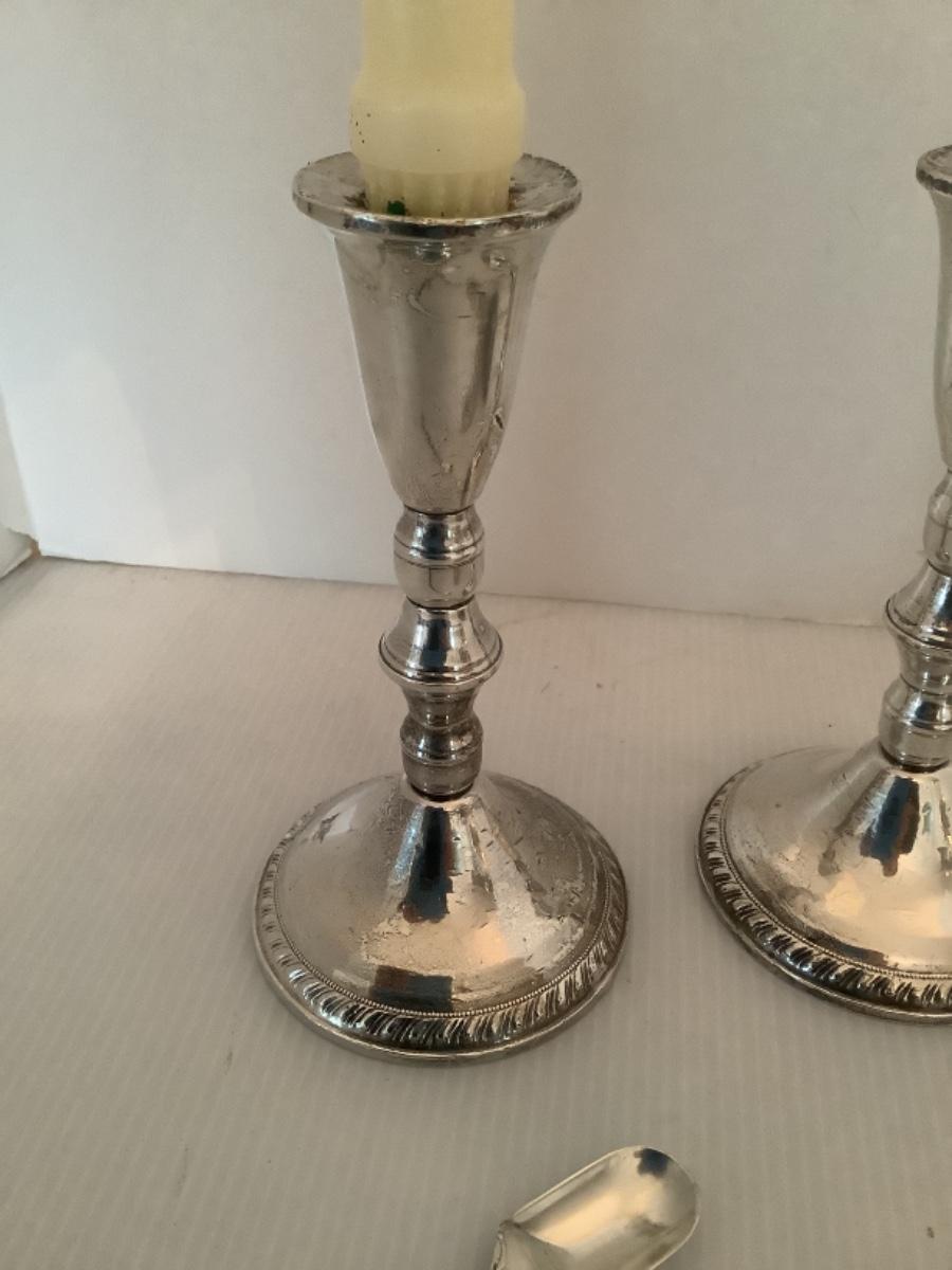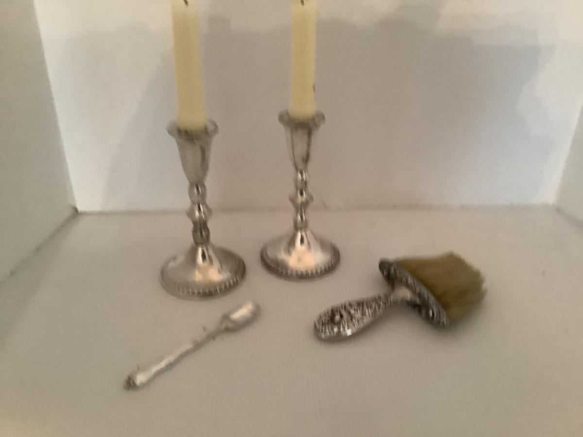 D796 Pair of Sterling Candlesticks and Clothes Brush