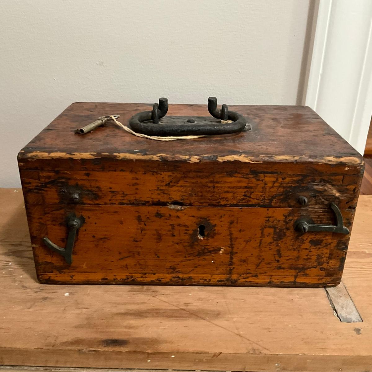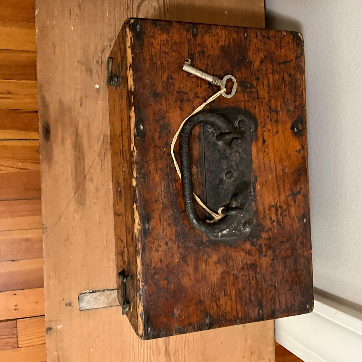 D799 Antique Primitive Wrought Iron Handle Document Box