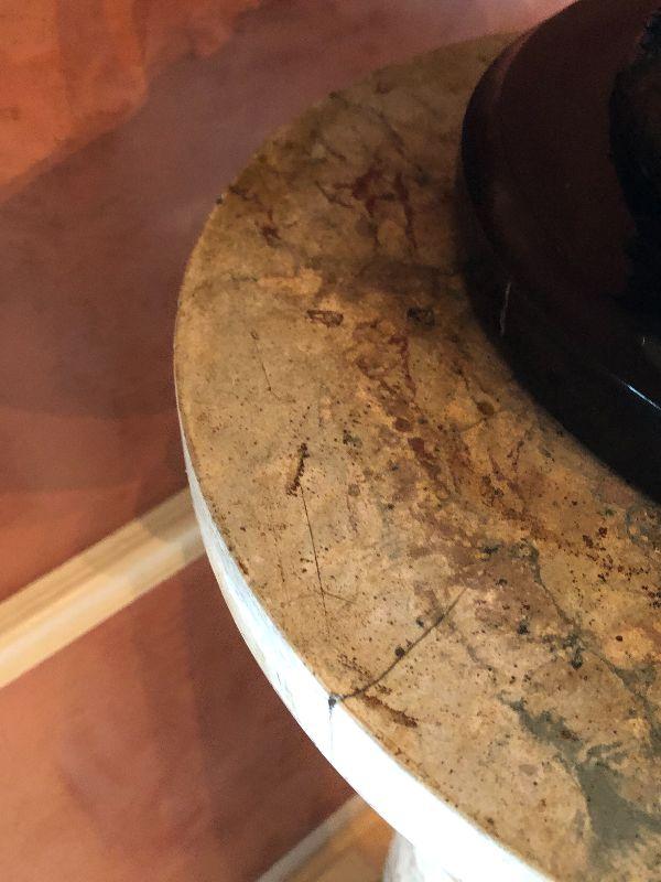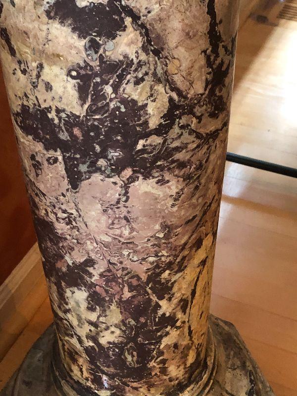 You are bidding on this beautiful marble pedestal. 46" H and 14" diameter. Look at the beautiful marbling/coloring on this! Good luck in your bidding!