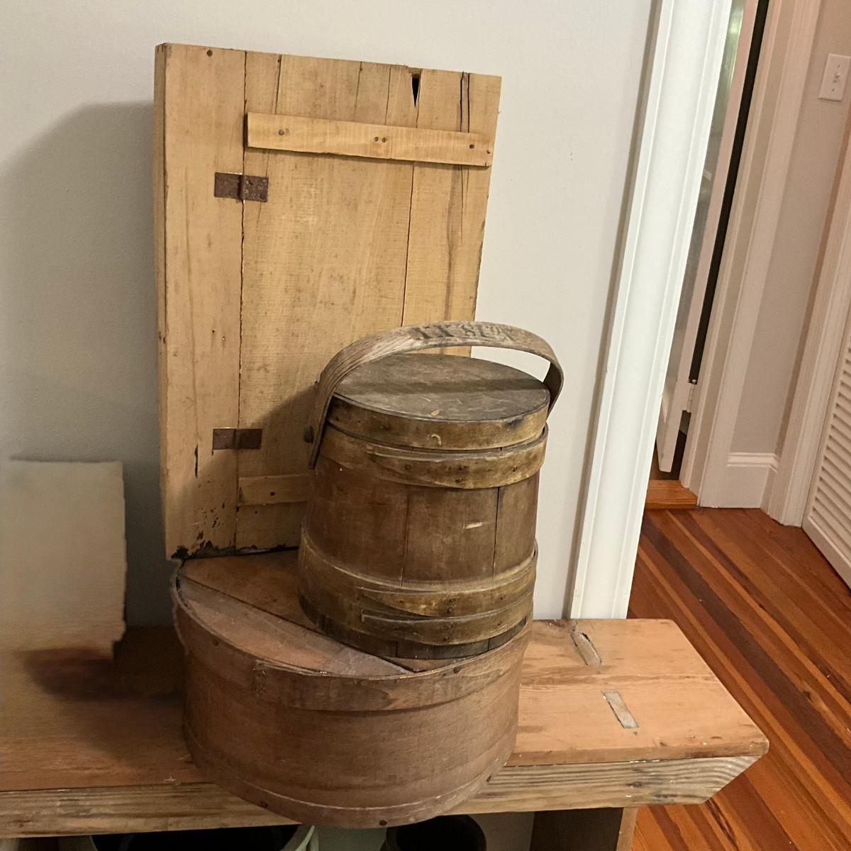 D804 Cheese Box, Wood Crate Wall Shelf & Firkin Bucket With Handle