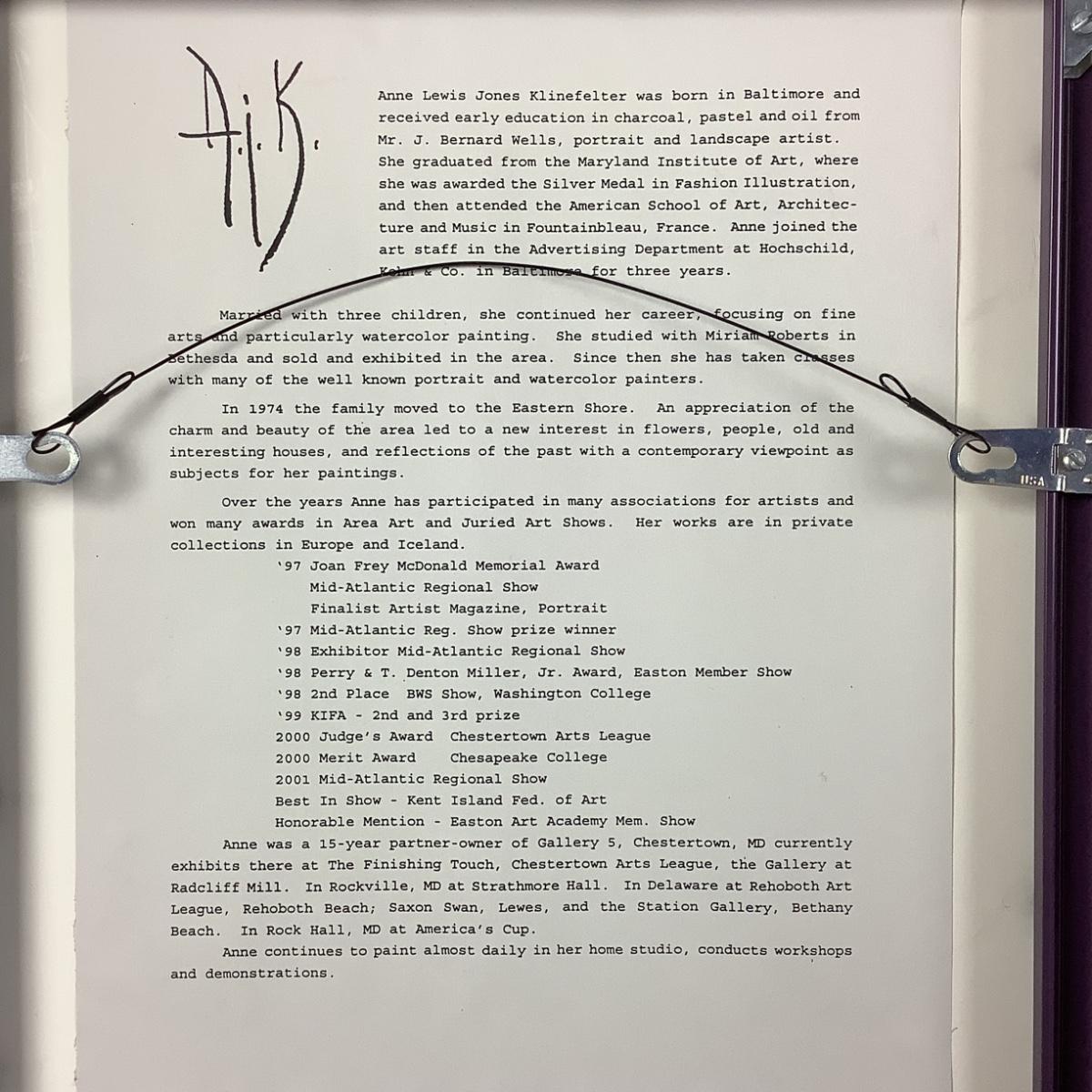 D8231 Original Watercolor Painting by Anne Lewis Jones Klinefelter