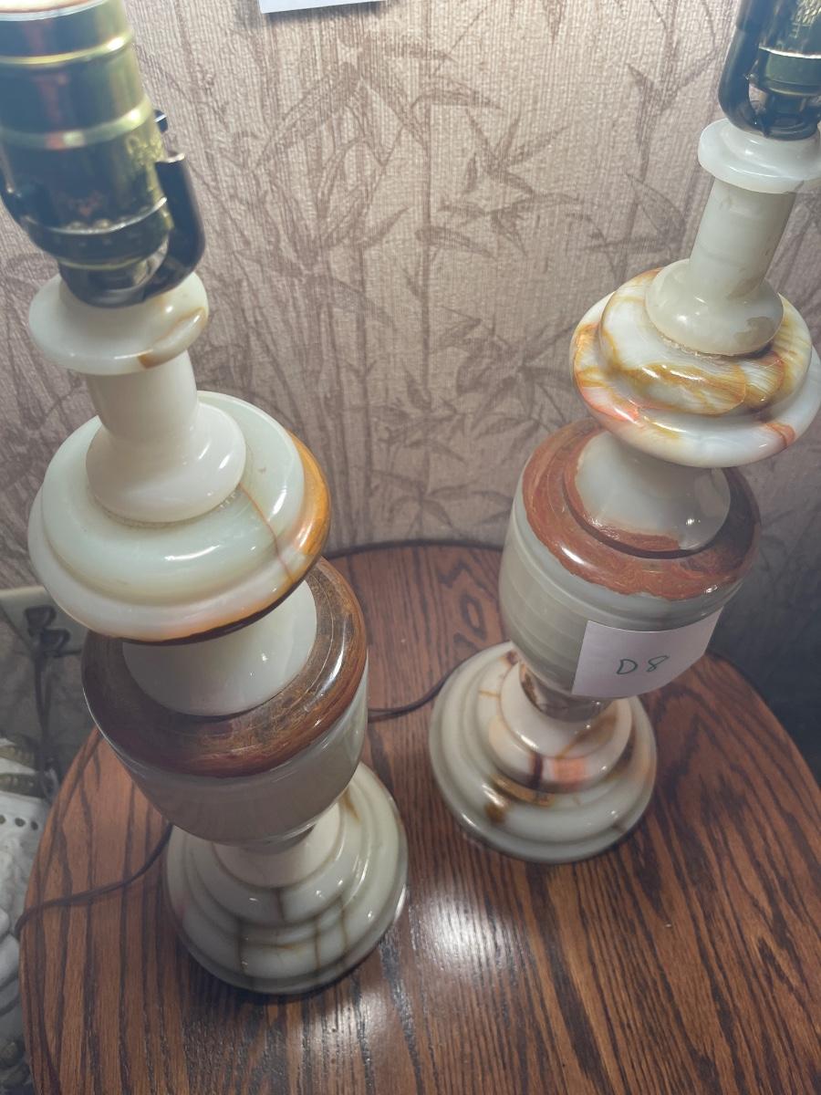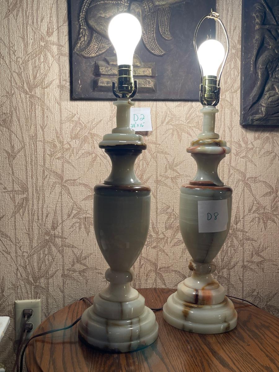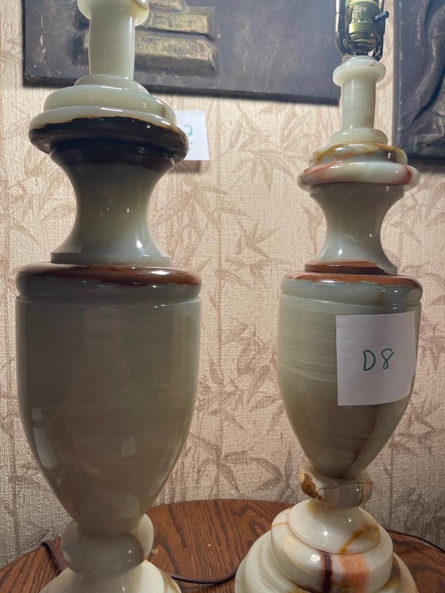 Very heavy, Lamp on the right has been (glued) repaired, but still functions fine.