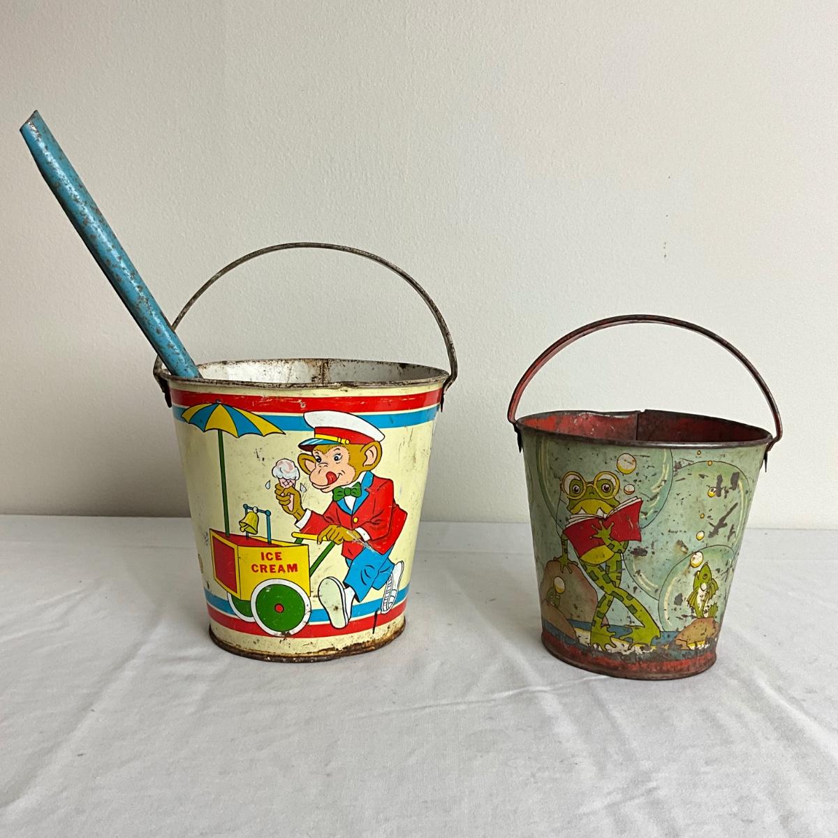 This lot includes one frog fern bise peat, and one monkey scene with one blue shovel