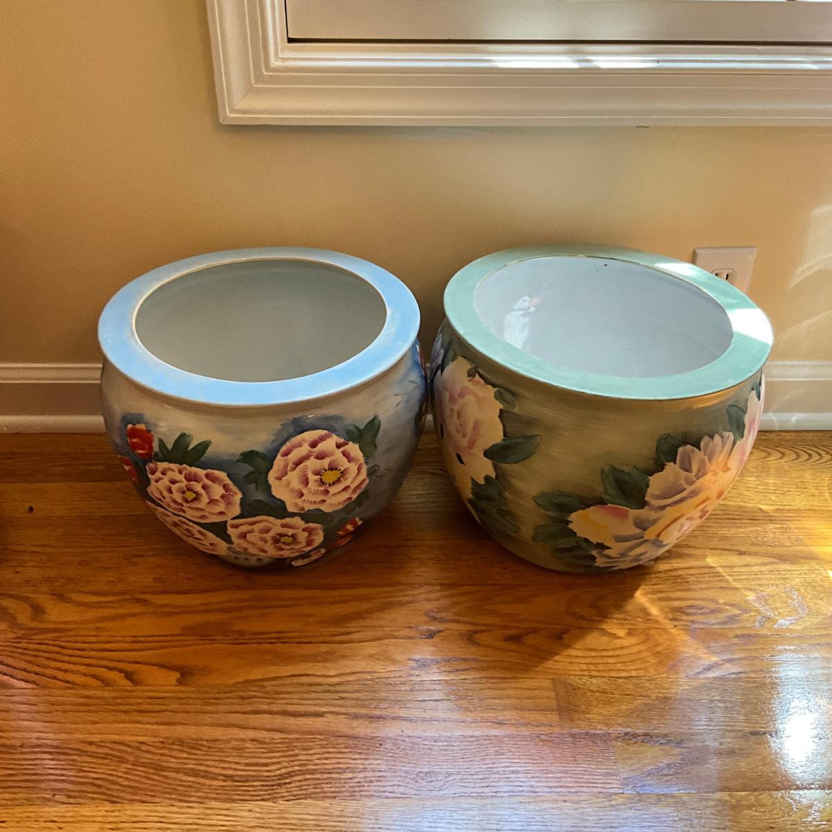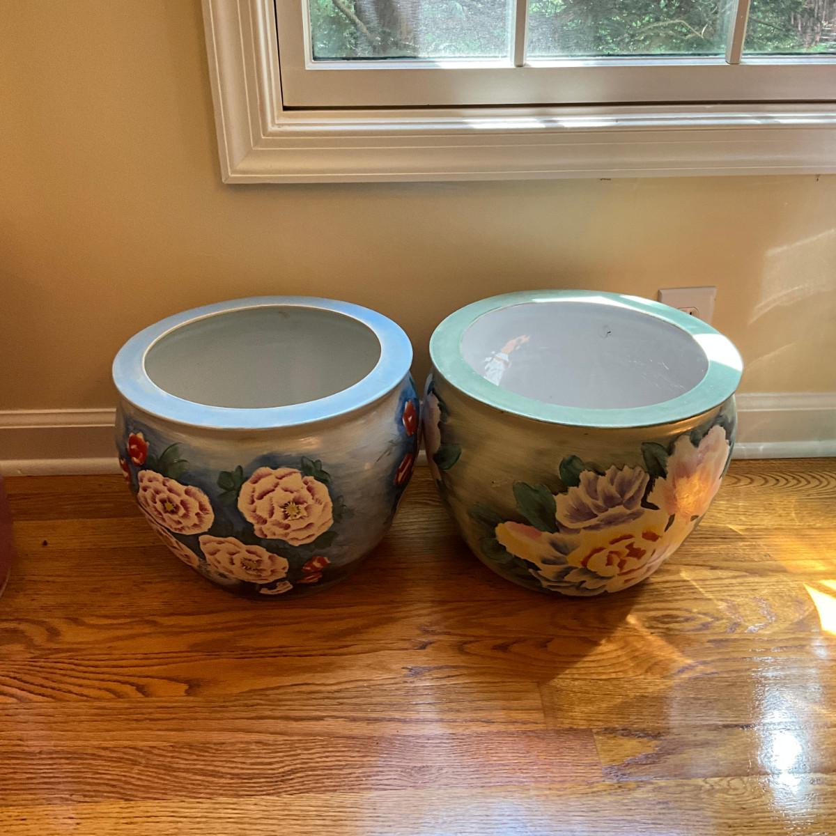 D906 Vintage Chinese Floral Pottery Planters