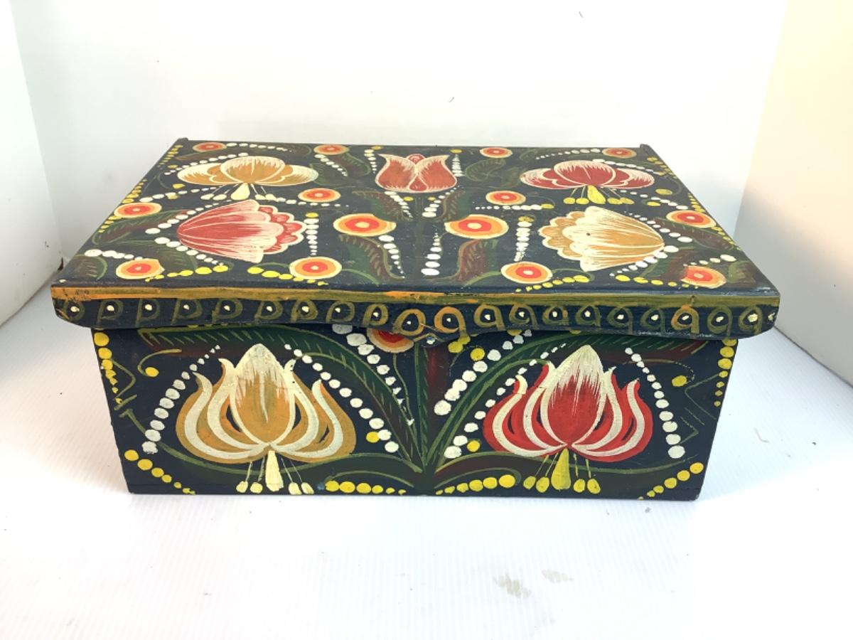 Antique Folk Art Hand Painted Box