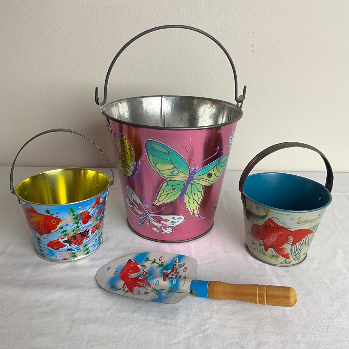 D920 Lot of J. Chein Metal Decorative Sand Pails