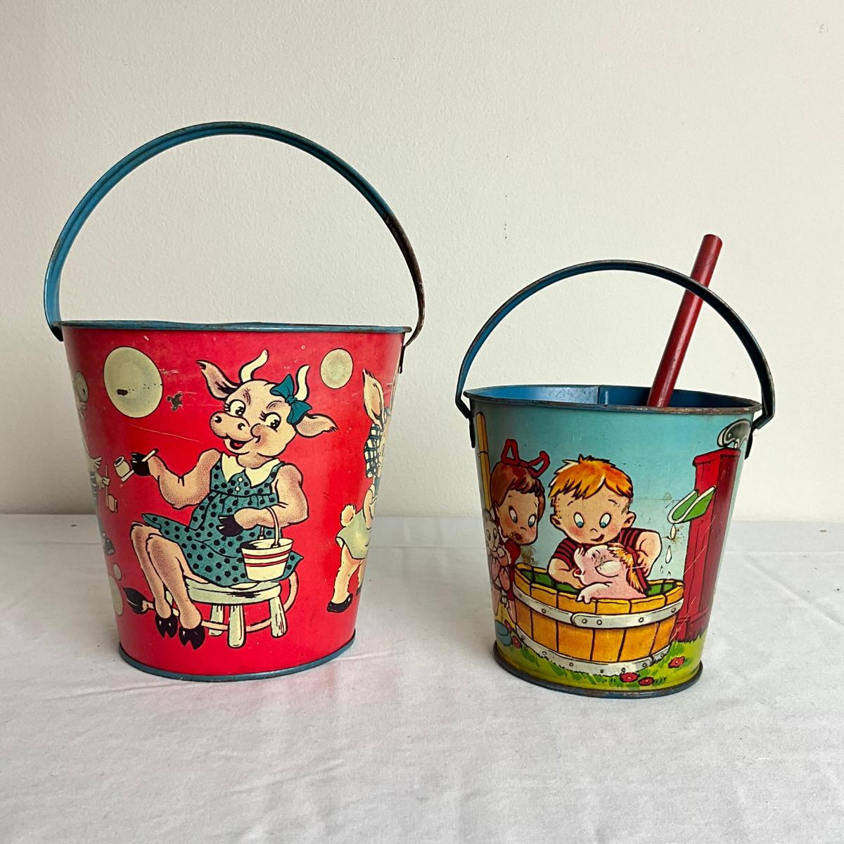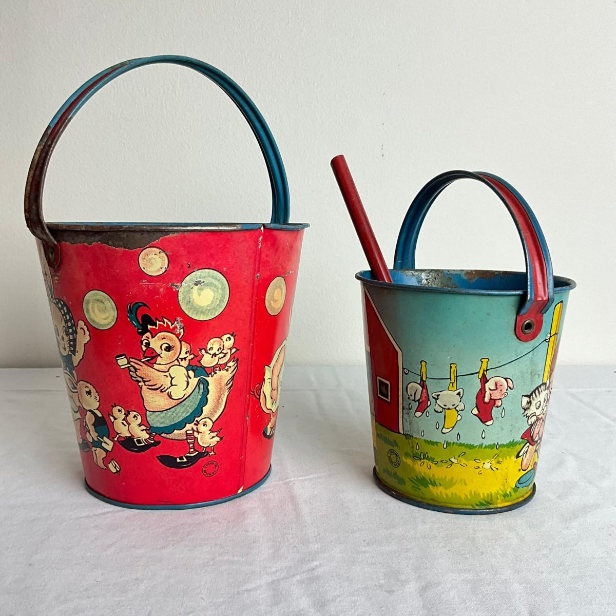 D928 Two T. Cohn Antique Lithograph Sand Pails