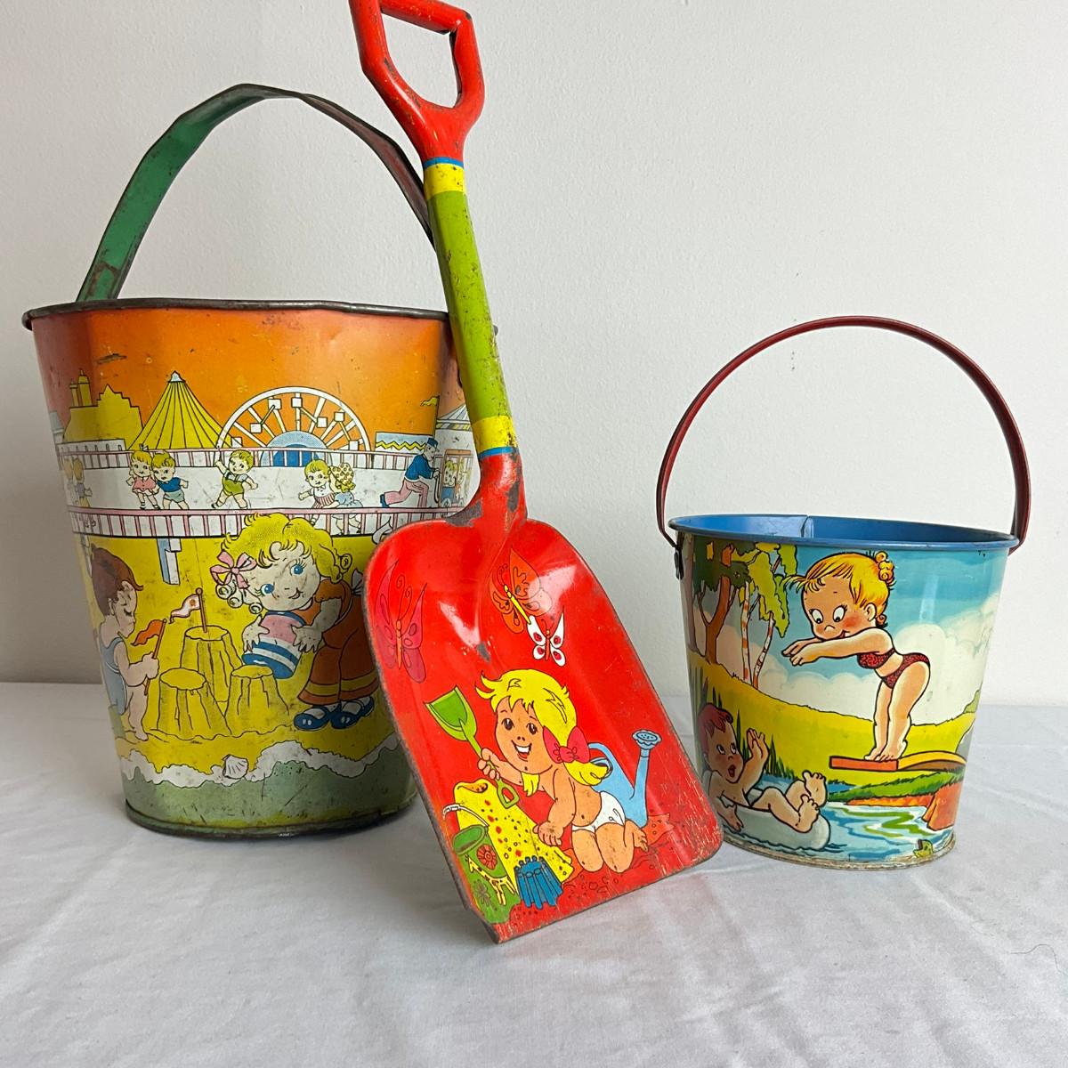 D937 Vintage T. Cohn Sand Pails With One Large Shovel