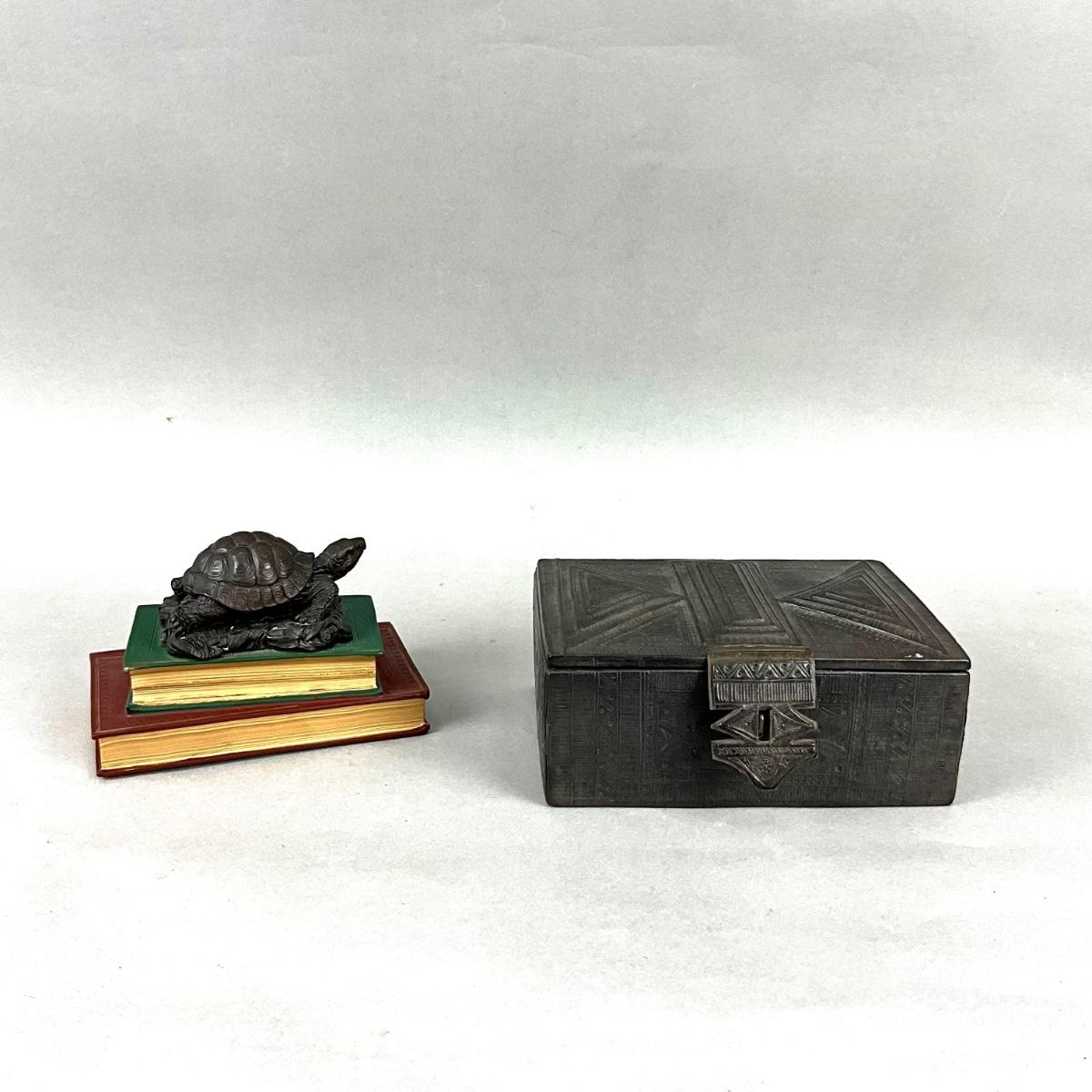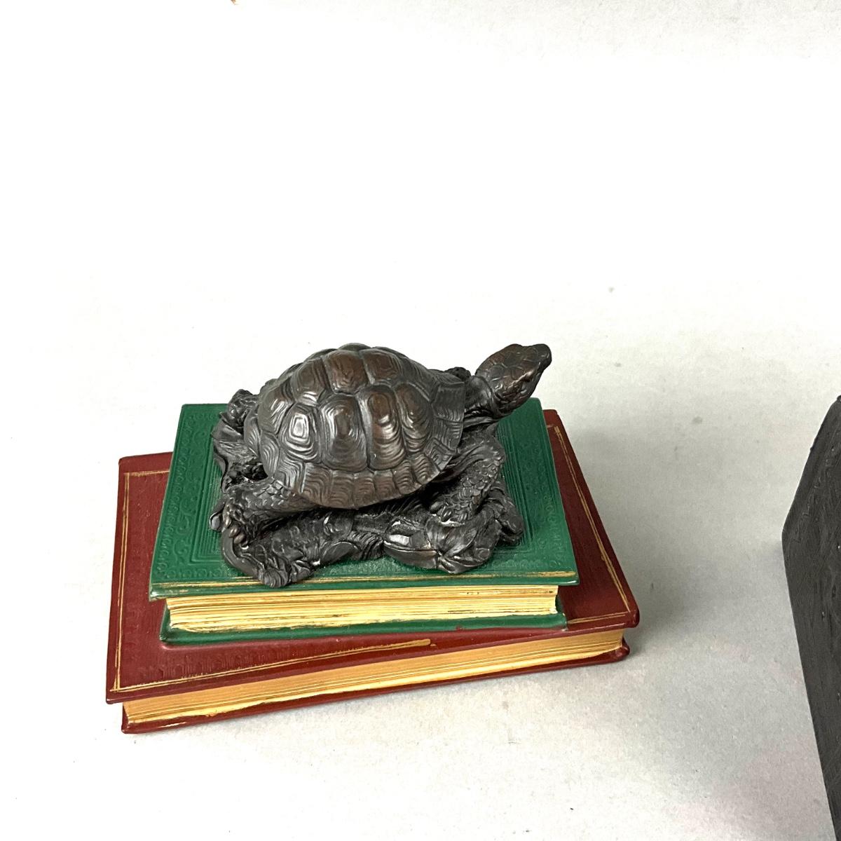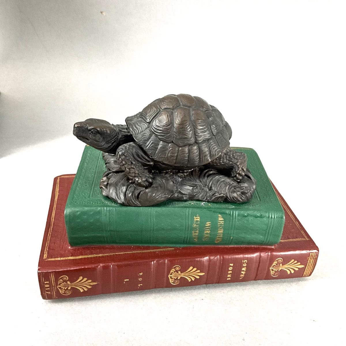 D945 After A. Giannelli Bronze Turtle Sculpture on Books with Leather Box