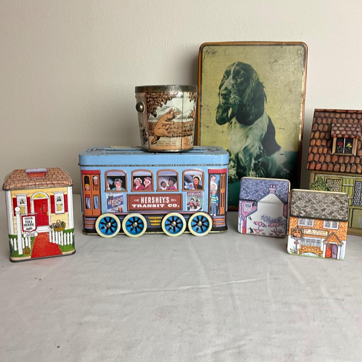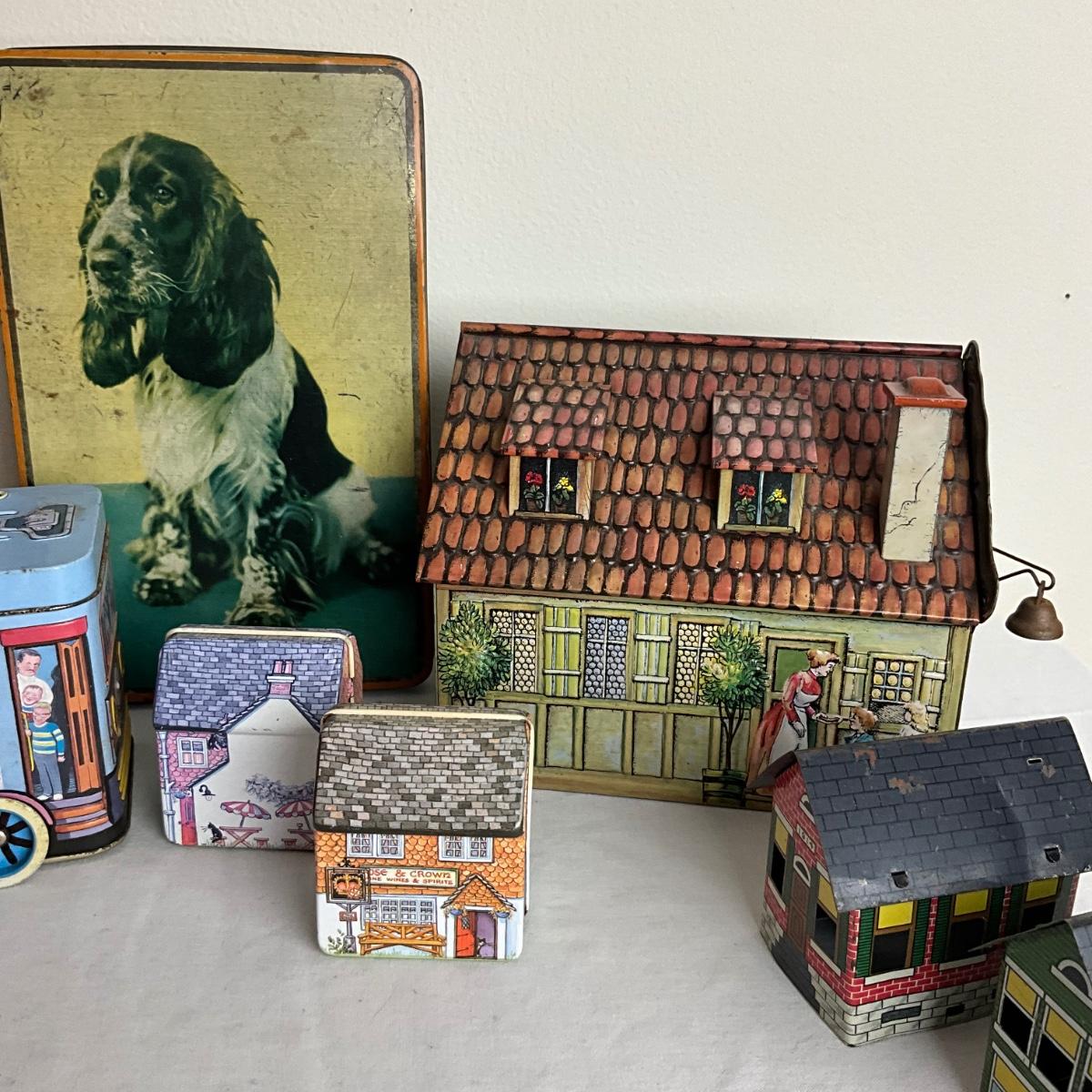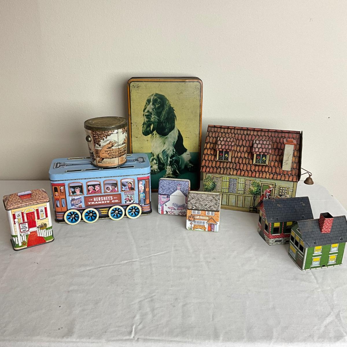 D957 Lot of Vintage Tin Candy Boxes and German Houses