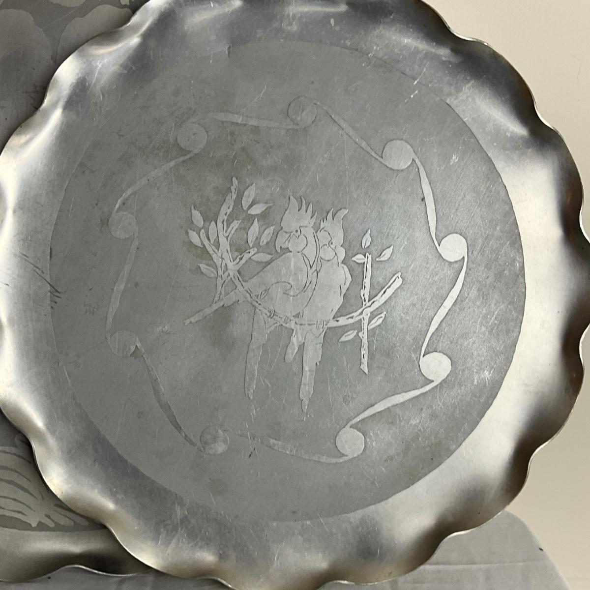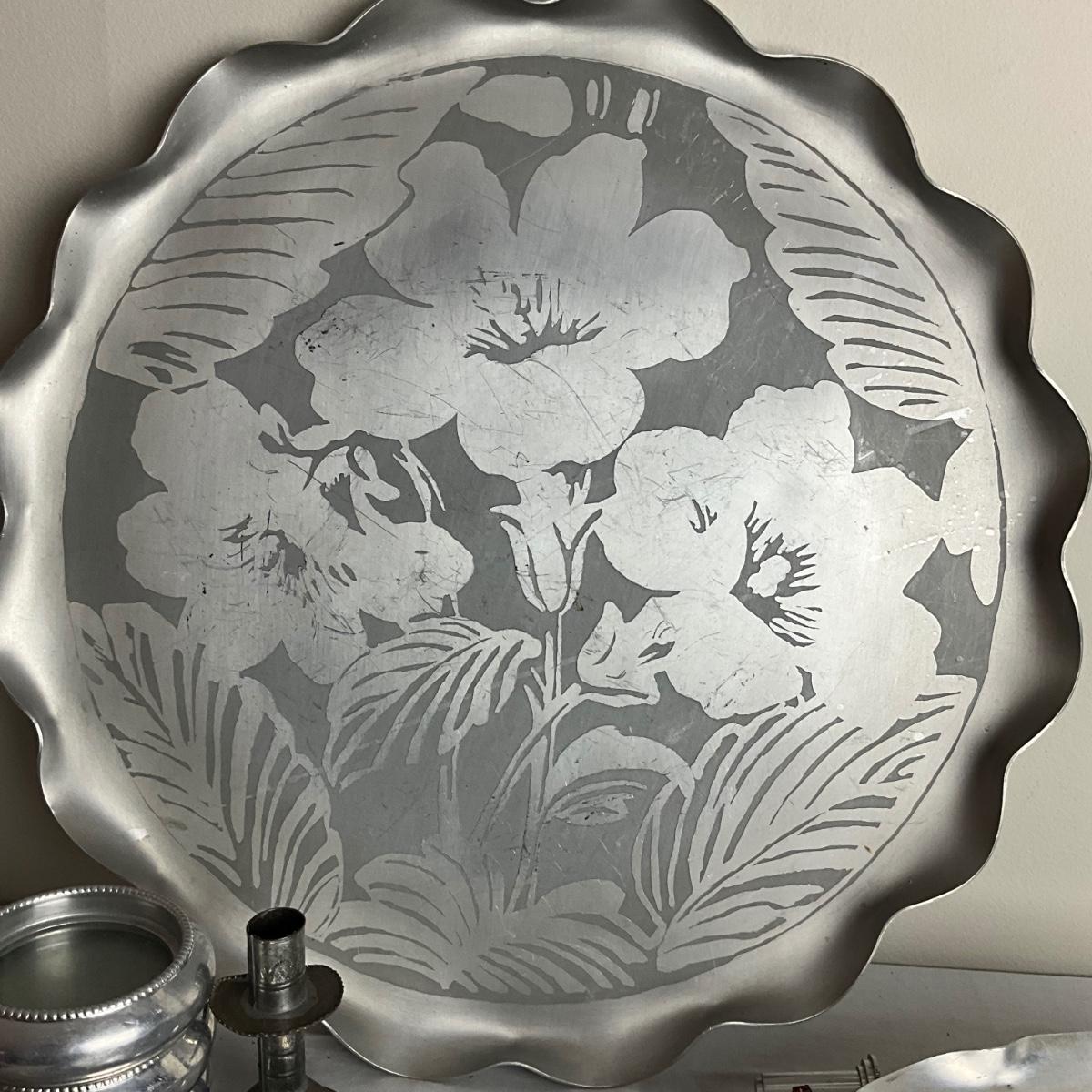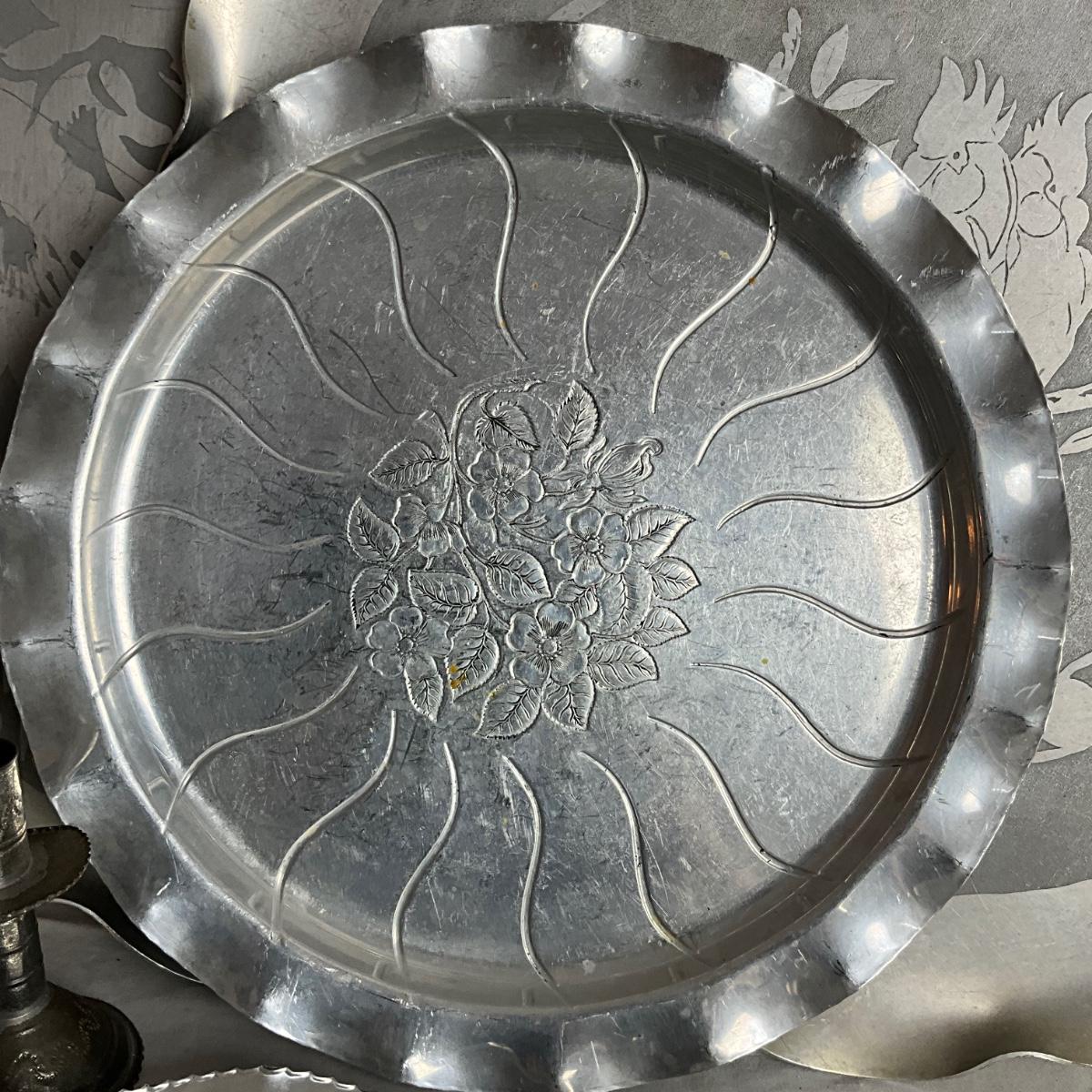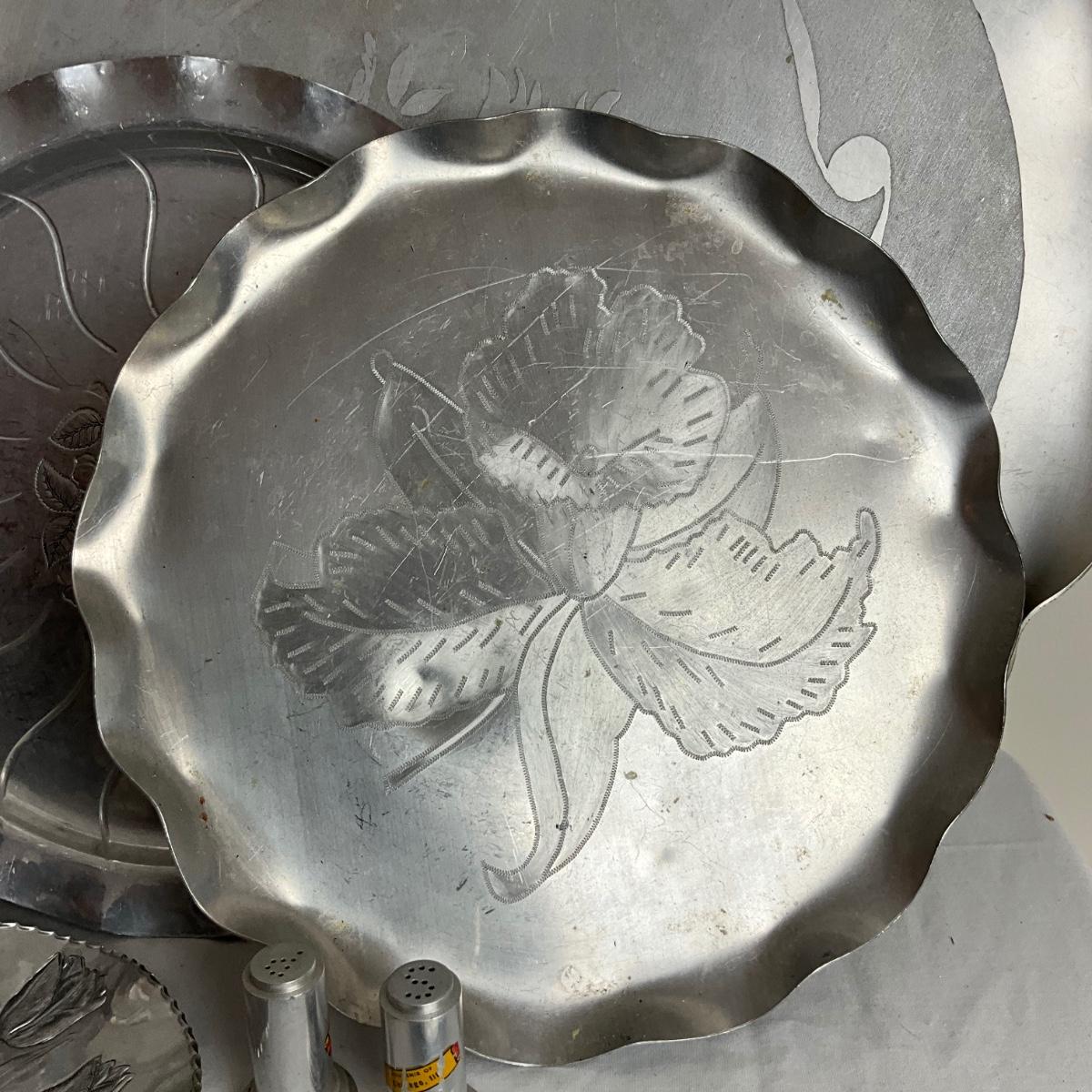 D959 Lot of Aluminum Platters, Coasters, Vase