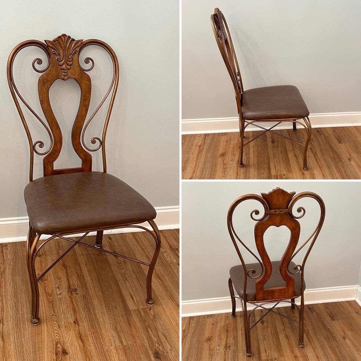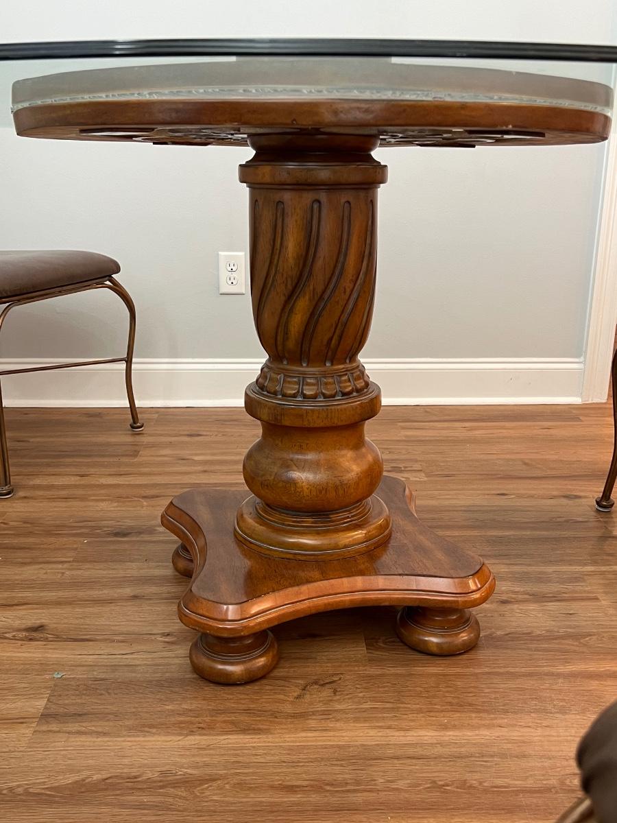 DA YA FURNITURE ~ Solid Wood / Metal Pedestal Glass Table & (4) Chairs ~ *Read Details
