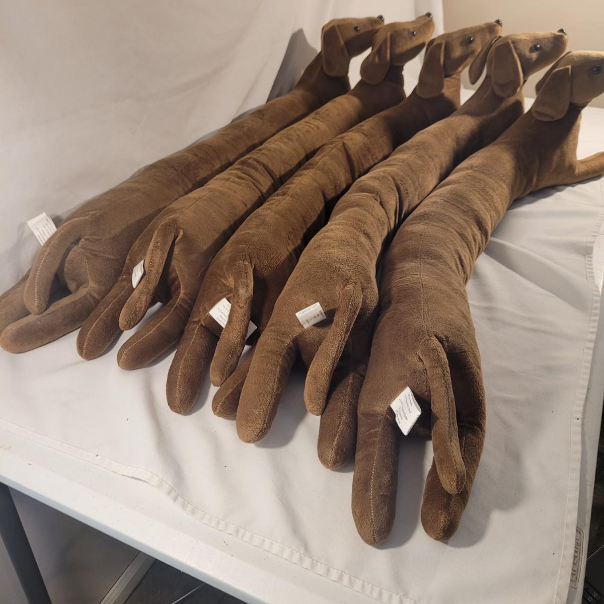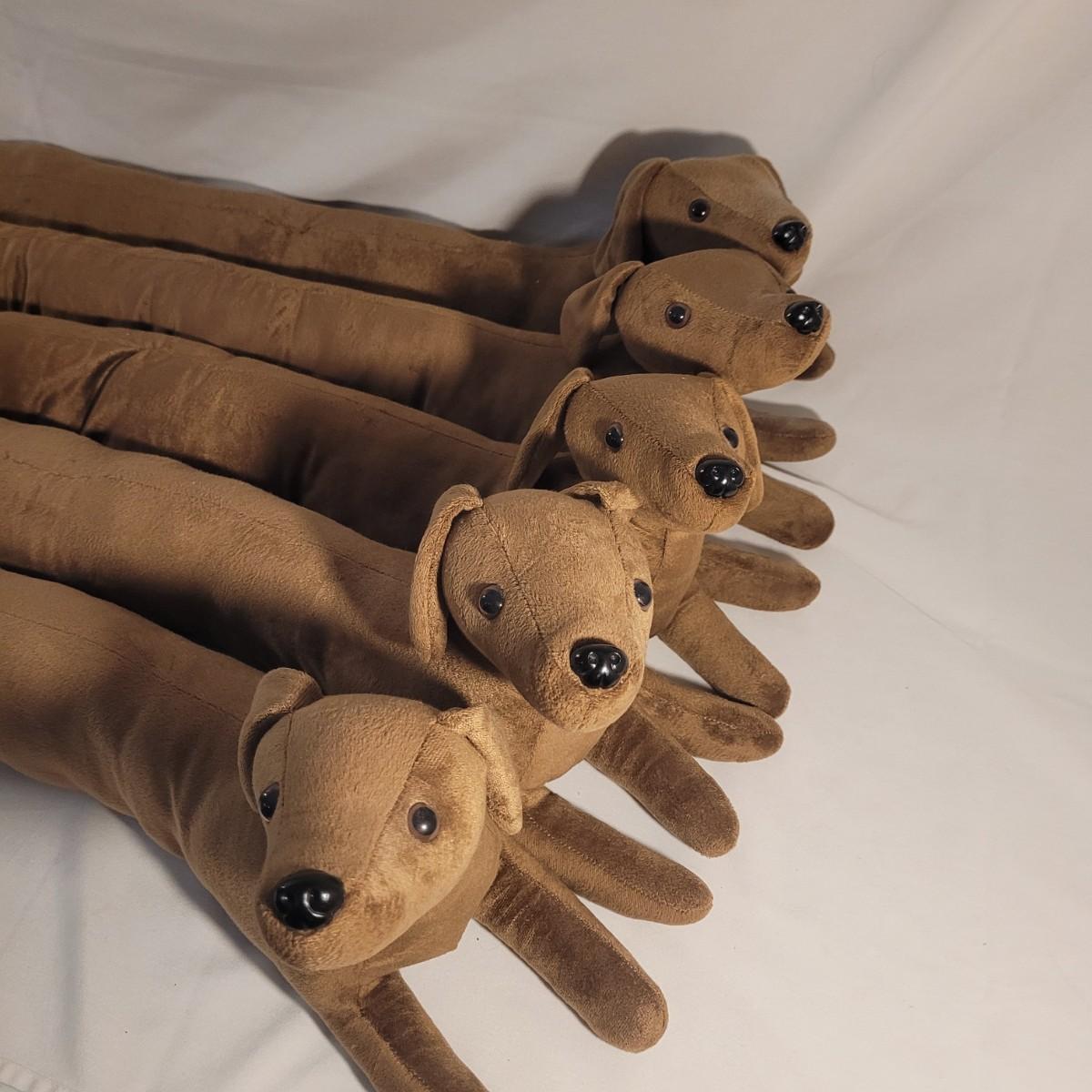 The Dachshund lover will enjoy this collection of five door draft stoppers to keep the home warm in cold weather. Measurements on tag (see photos). Shipping available.