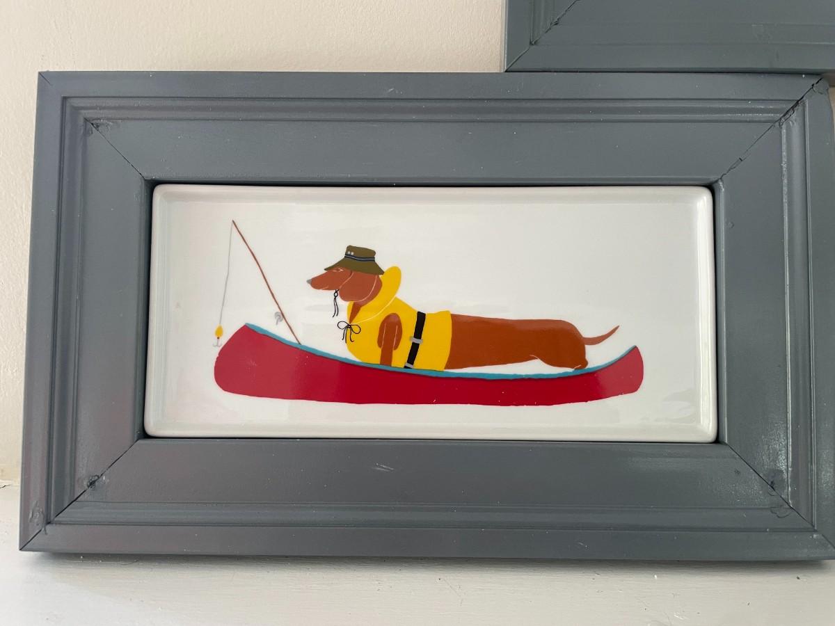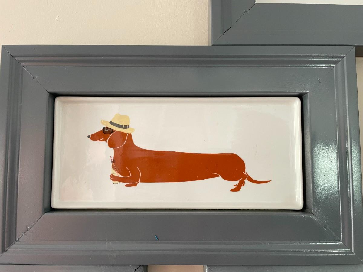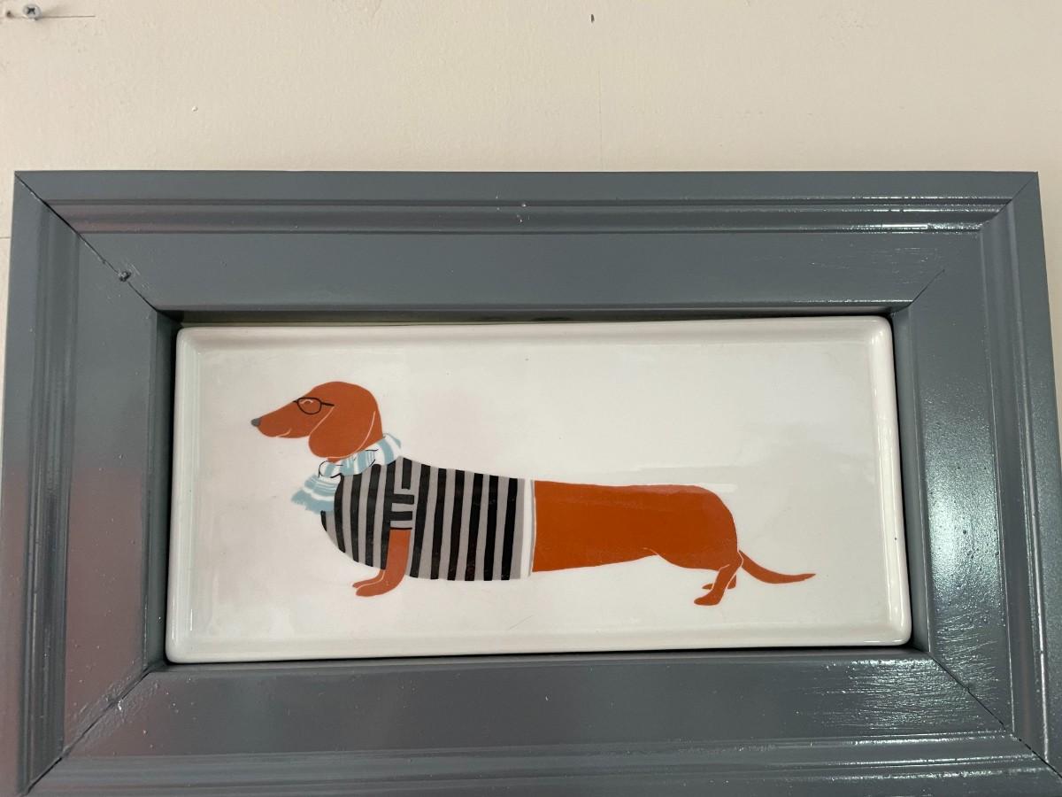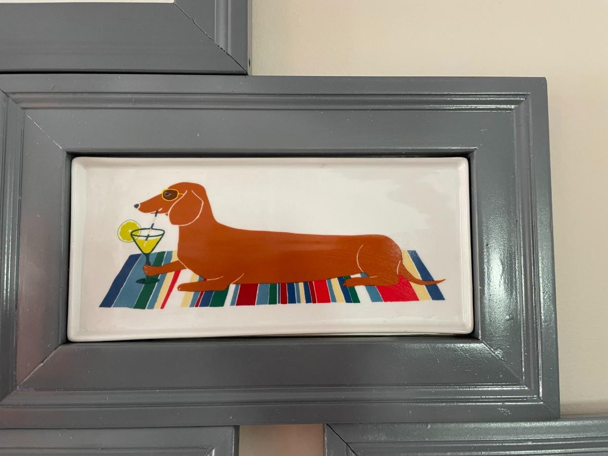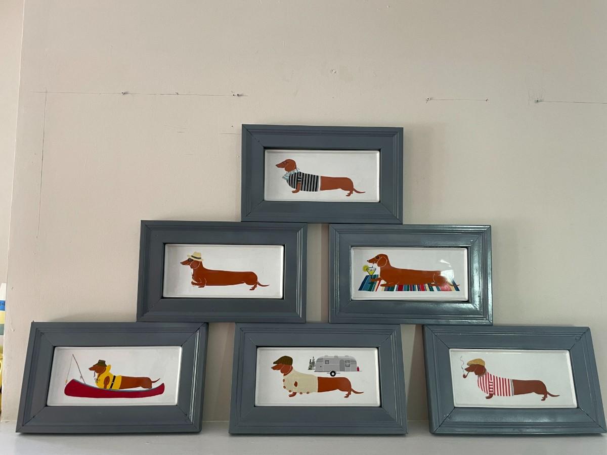 set of 6 framed trays depicting cute Dachshund Pups, 14.5"w x 9"