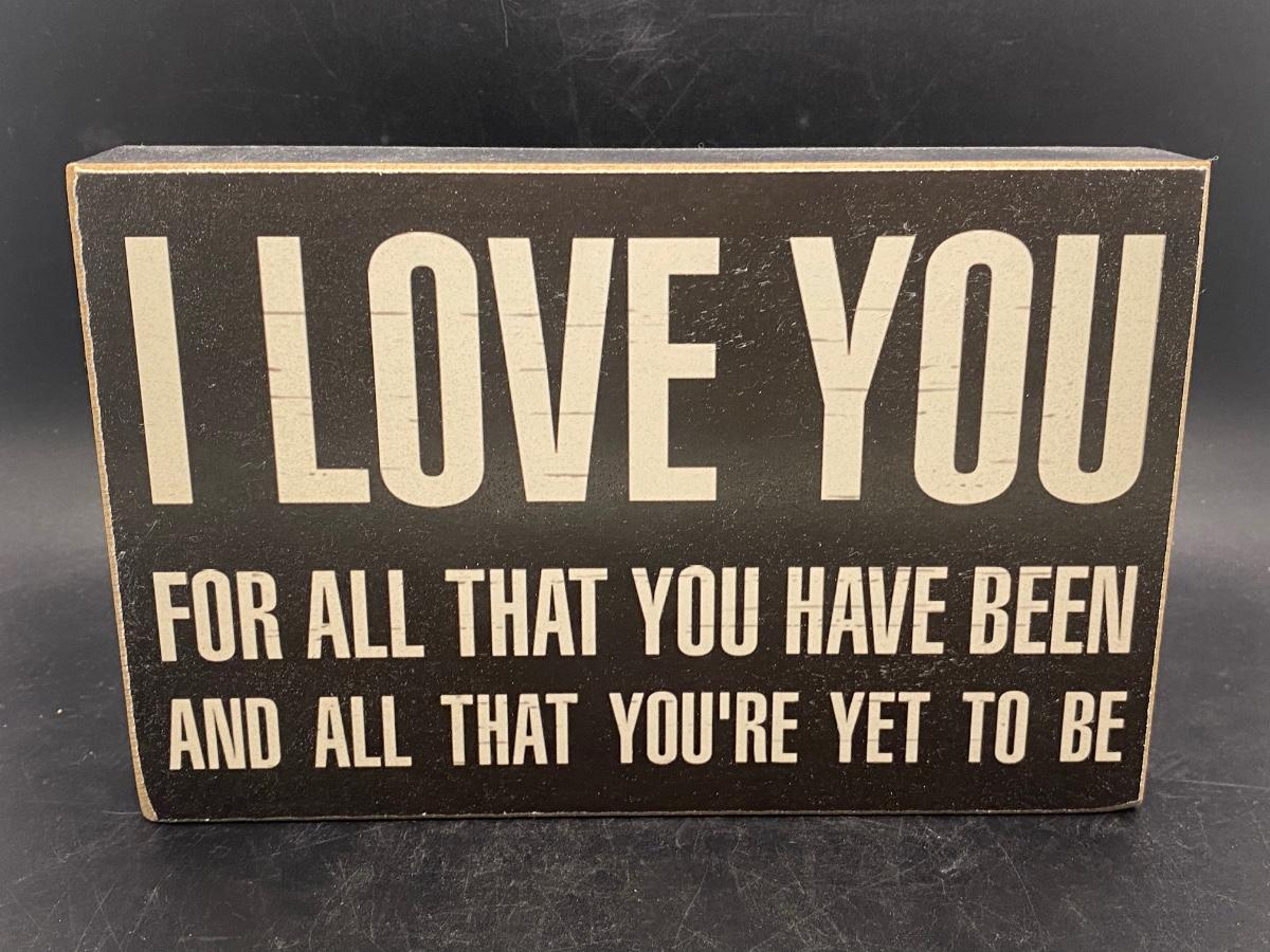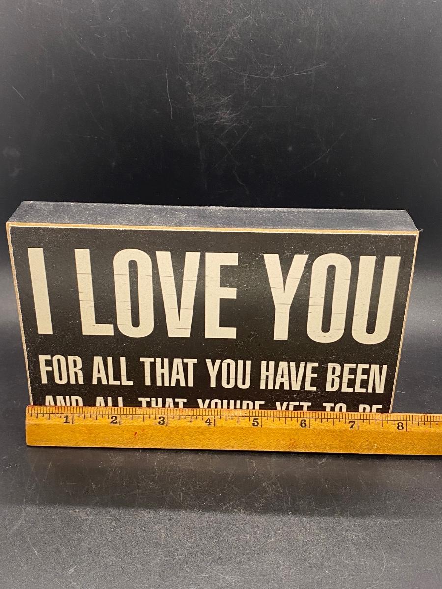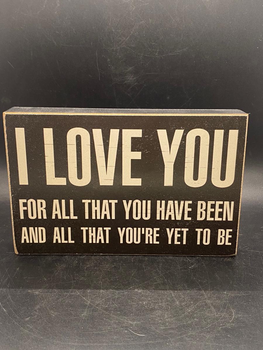"I Love You for all that you have been and all that you're yet to be" daily affirmation inspirational quote art. Can hang or sit on shelf. Rectangle wood box, about 8" length.