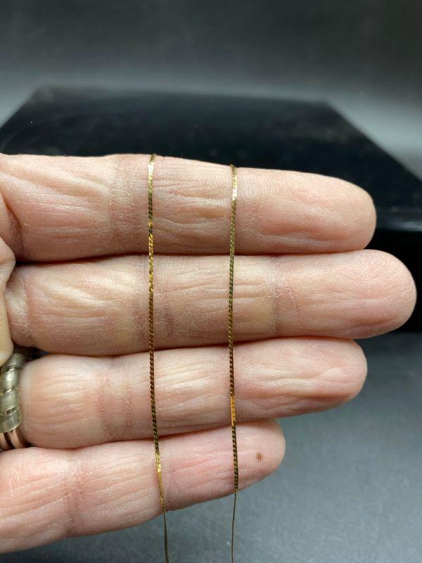 Dainty fine link 14k yellow gold necklace. .74g tw. Measures about 7.5". There is a small kink in the chain (photo).