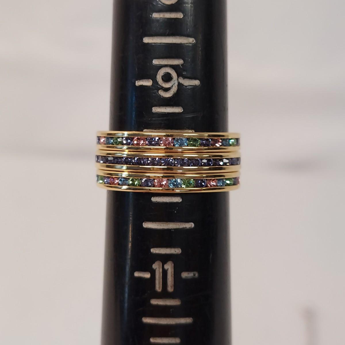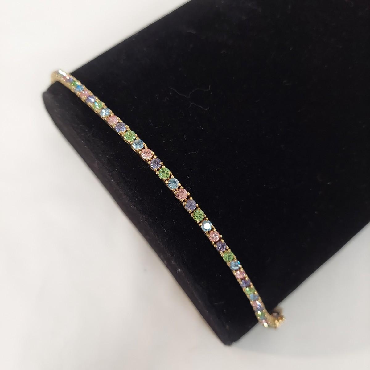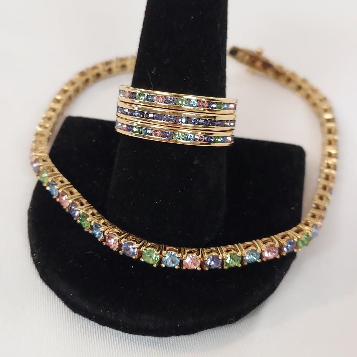 Several pieces of delicate jewelry with colored stones. Lot includes 10 necklaces, one bracelet and three stackable rings. The necklaces range from 16-18" long. The rings and bracelet appear to be a set. Some items are stamped .925. Some stones appear to be glass simulants while others may be semi precious stones. Please see photos for all markings found. We cannot guarantee the authenticity of the gemstones. All sales are final. No returns or refunds. Please bid accordingly.