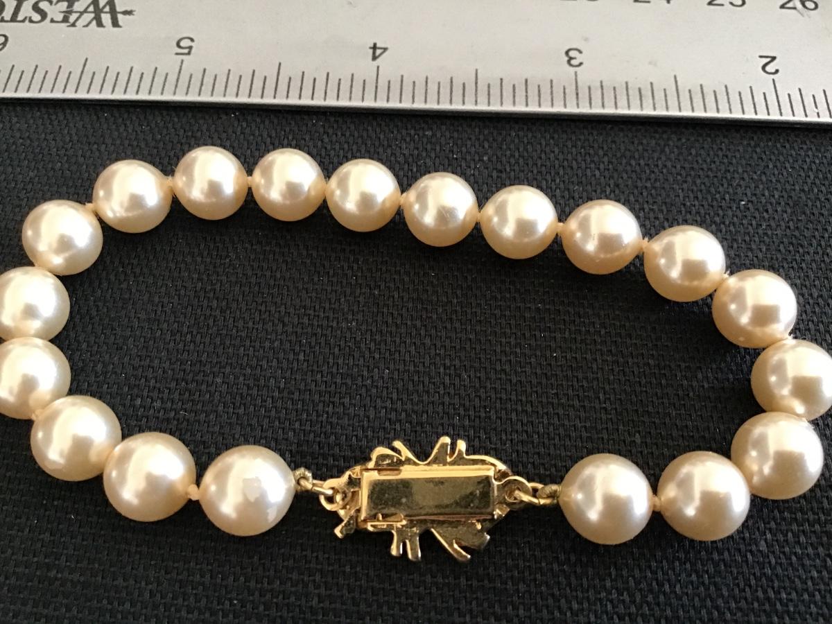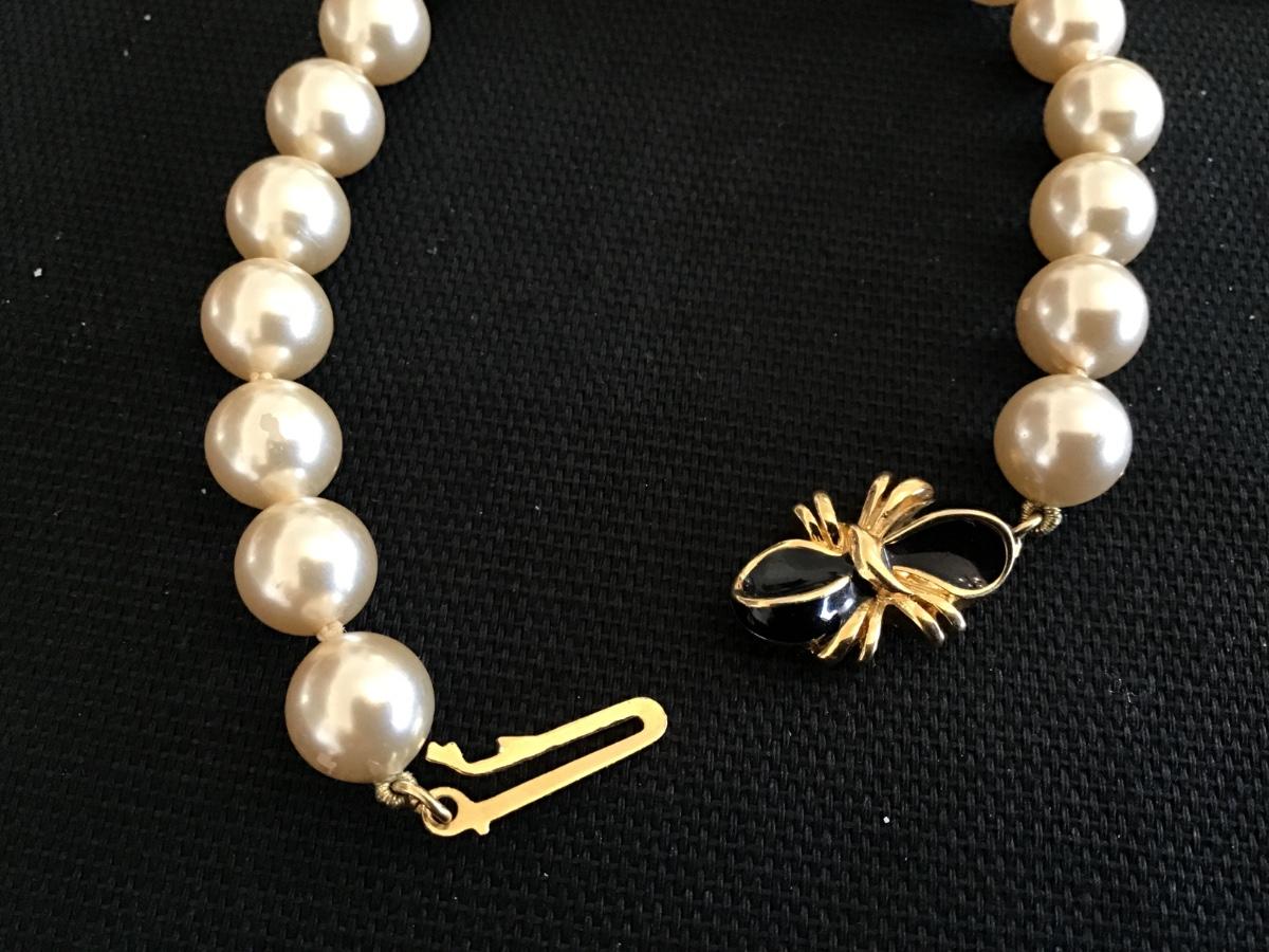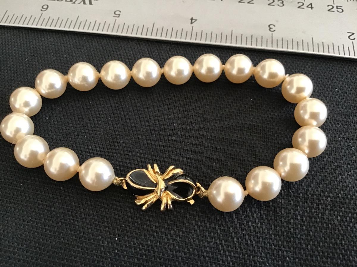 Dainty Enamel Pearl Locking Bracelet Vintage