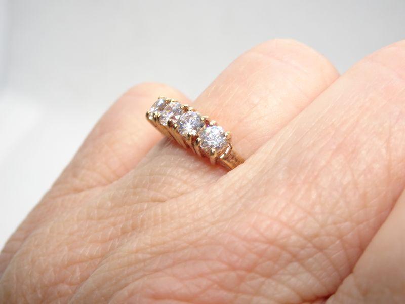 Dainty Gold Tone 4 Stone Rhinestone Ring