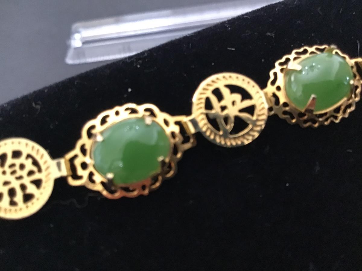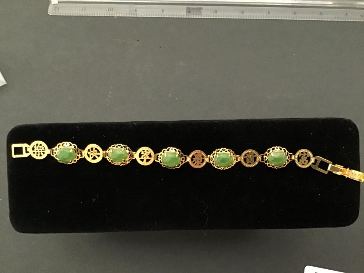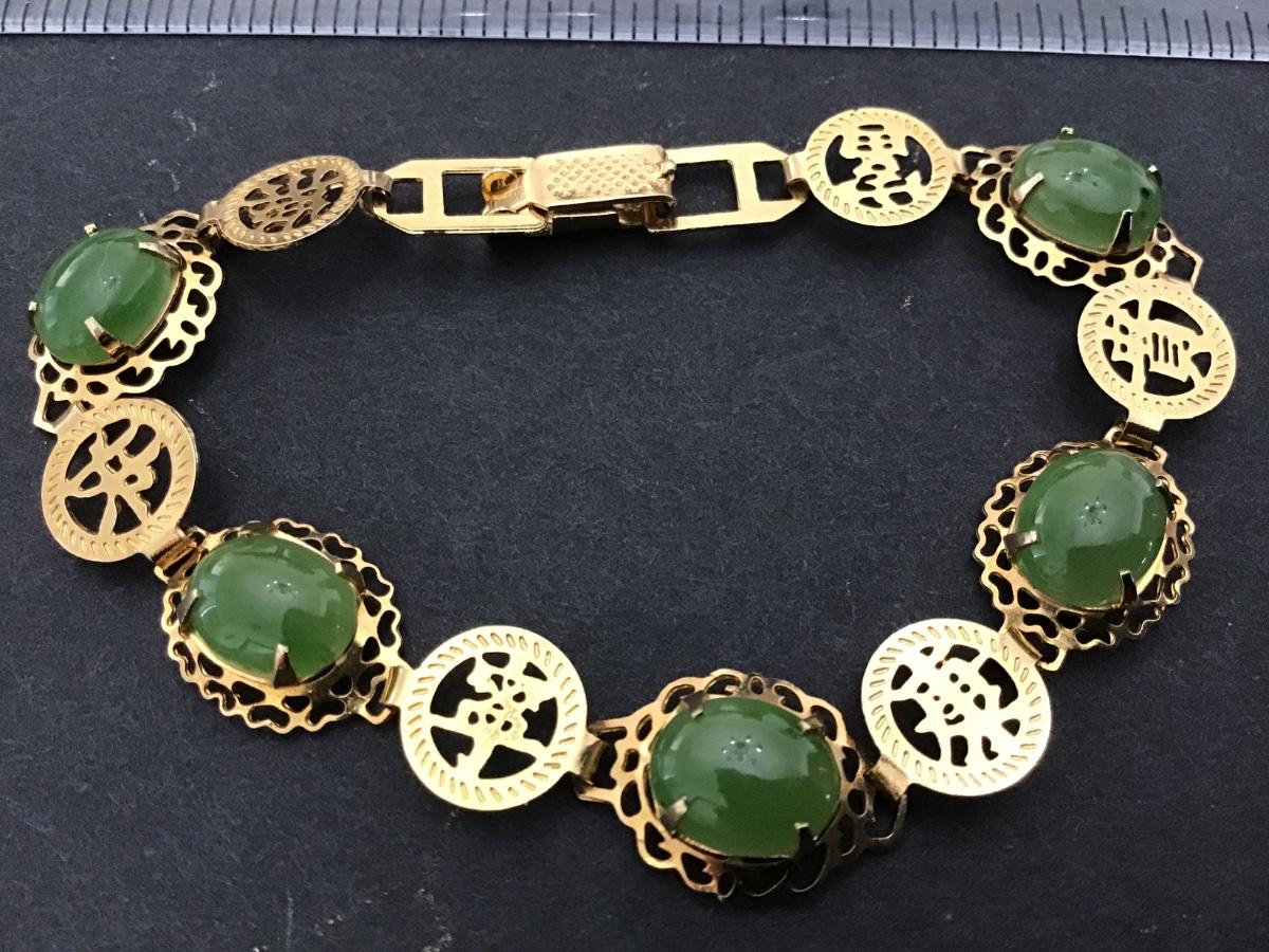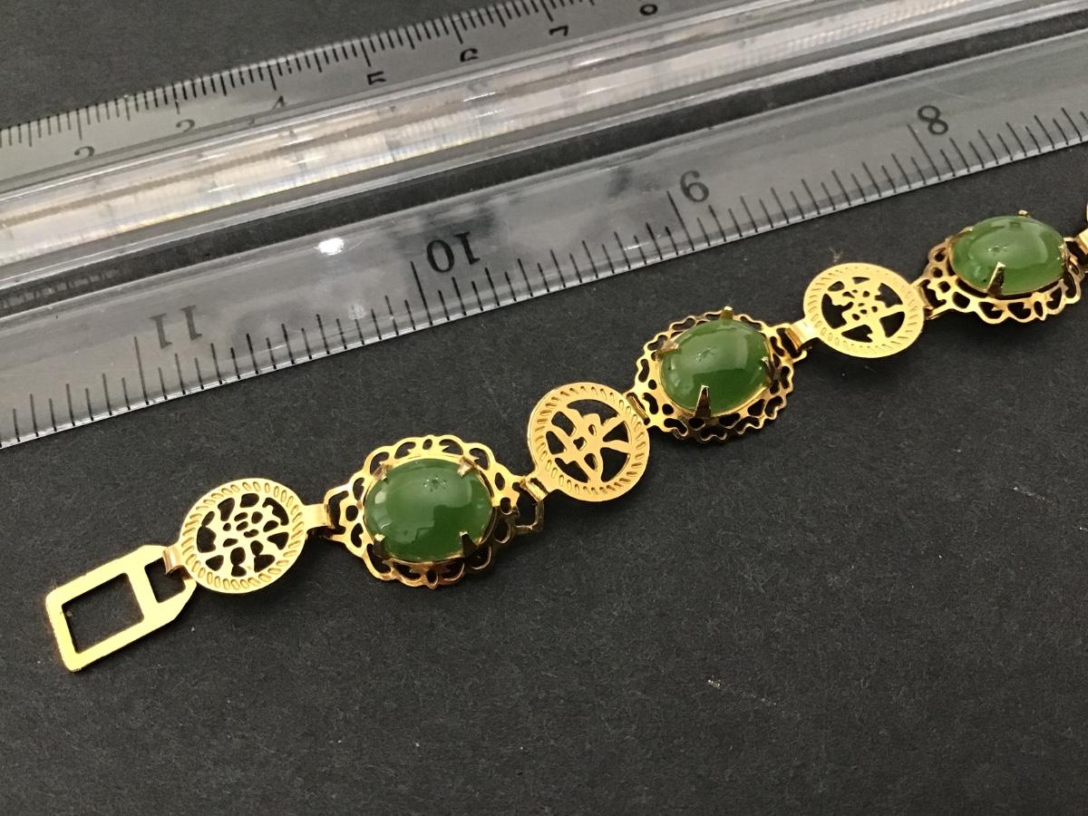 Dainty Gold Tone Green Stone or Glass Bracelet