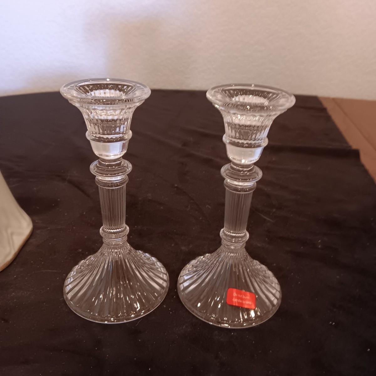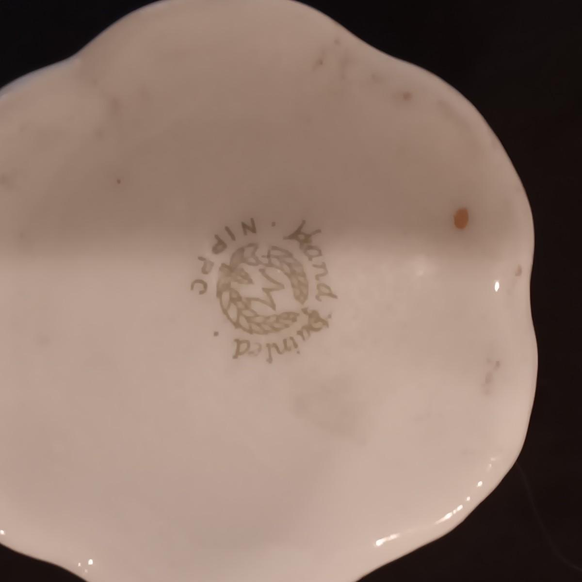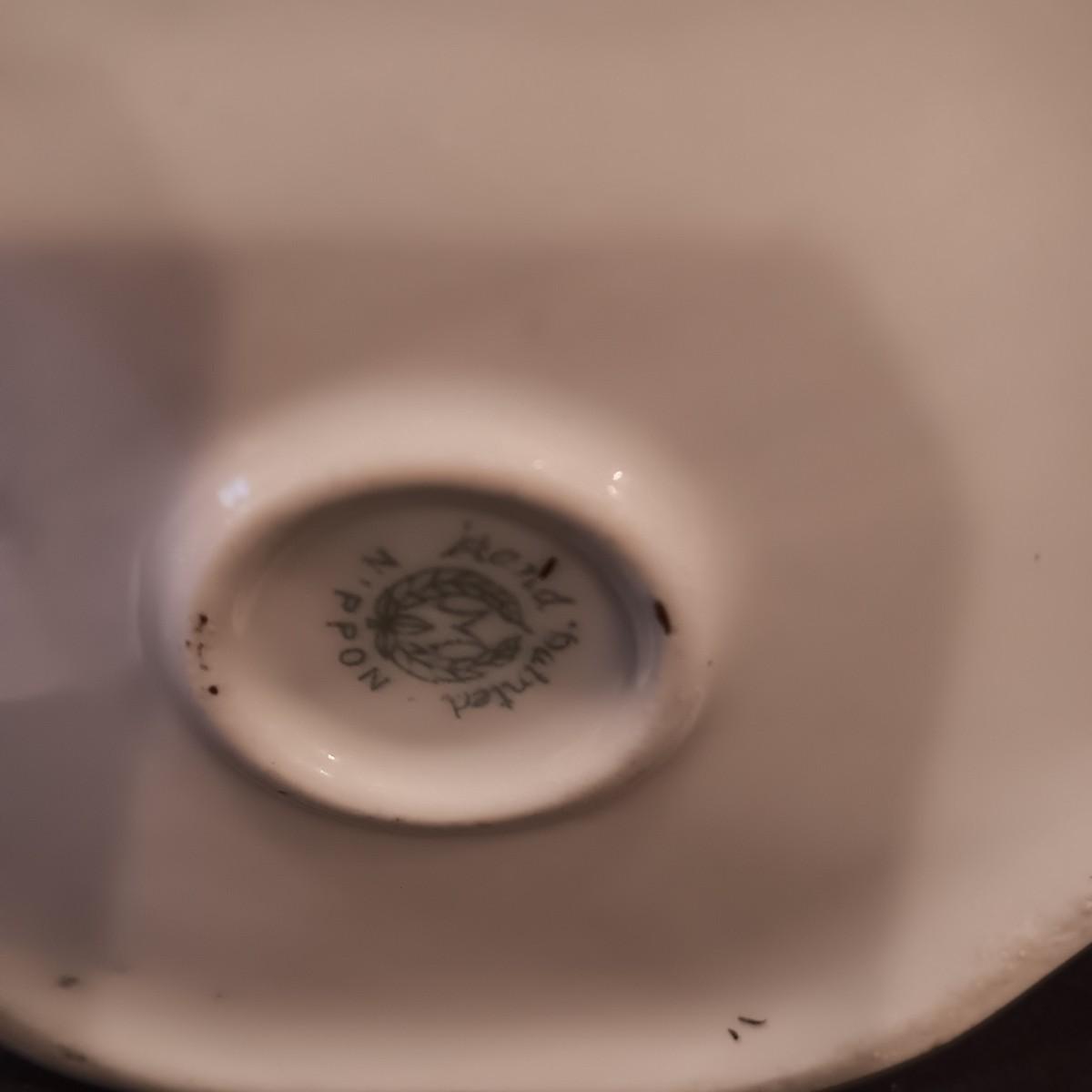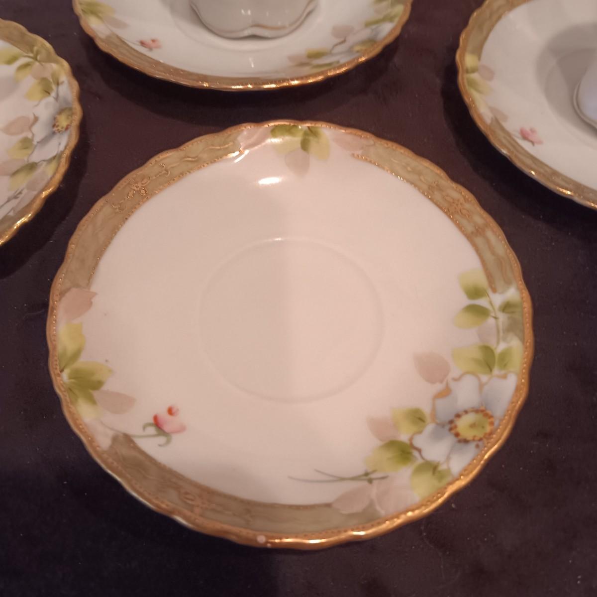DAINTY HAND PAINTED NIPPON TEAPOT W/CUPS AND SAUCERS PLUS GLASS CANDLESTICKS
