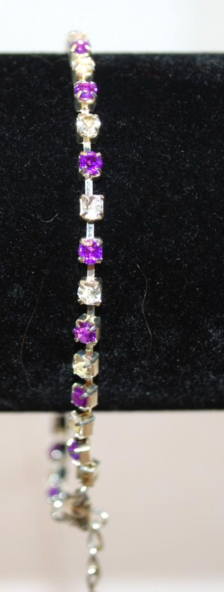 Dainty Purple & Clear Stones Bracelet 7"