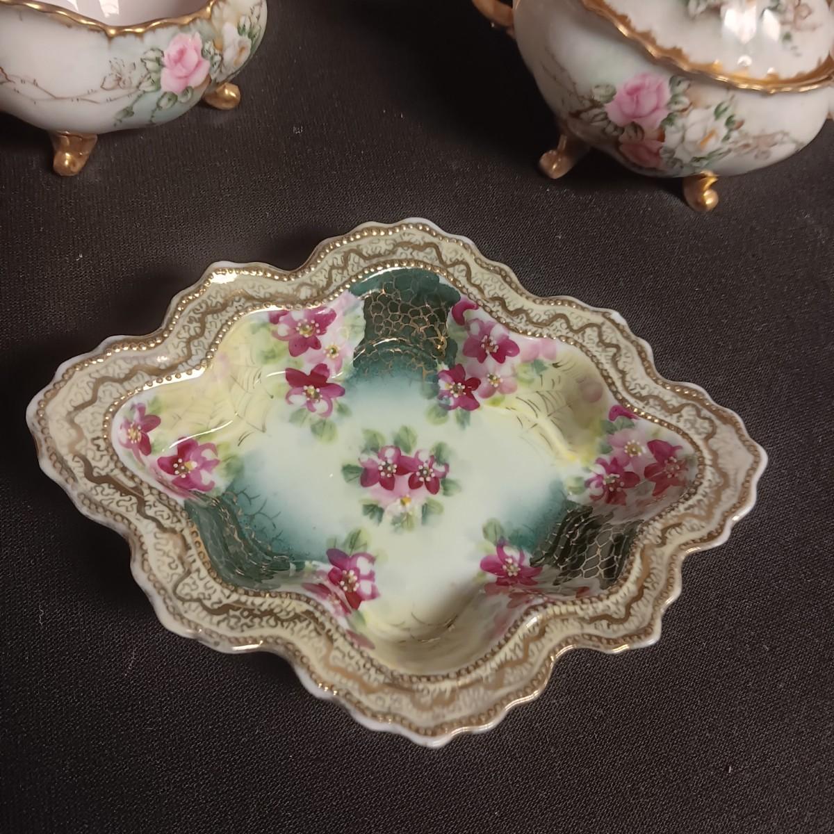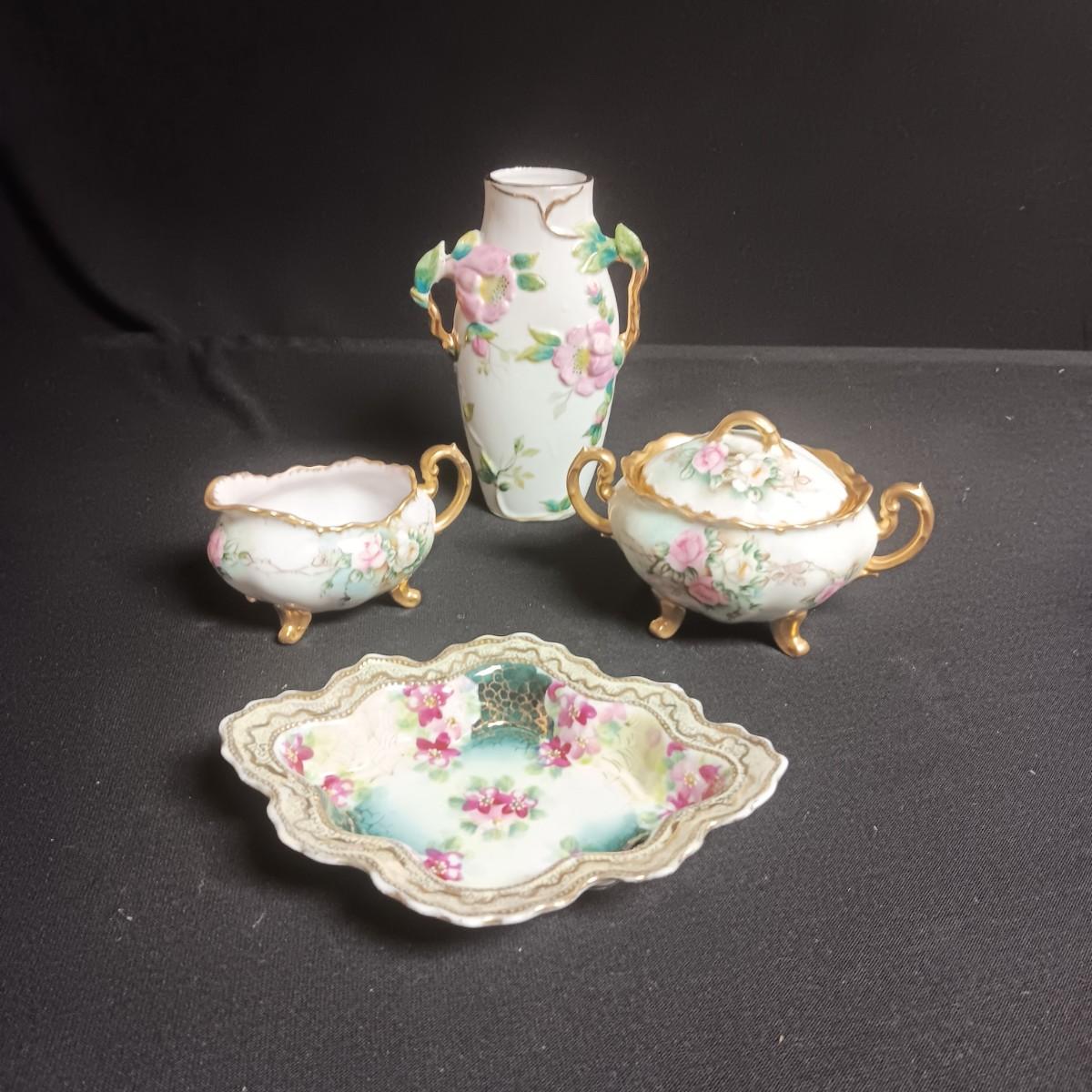 DAINTY ROYAL AUSTRIA CREAM & SUGAR SET, BUD VASE AND SMALL PLATE