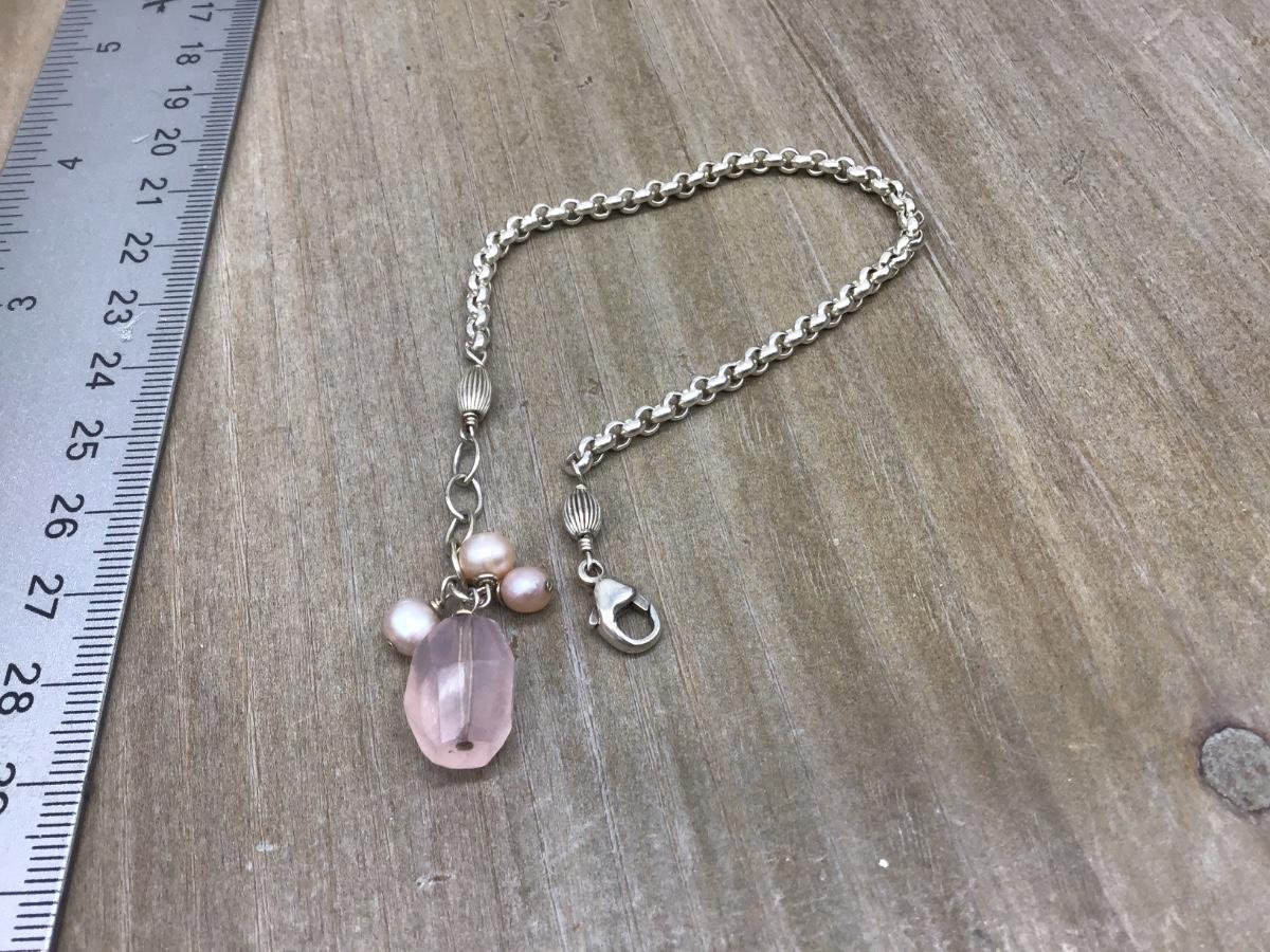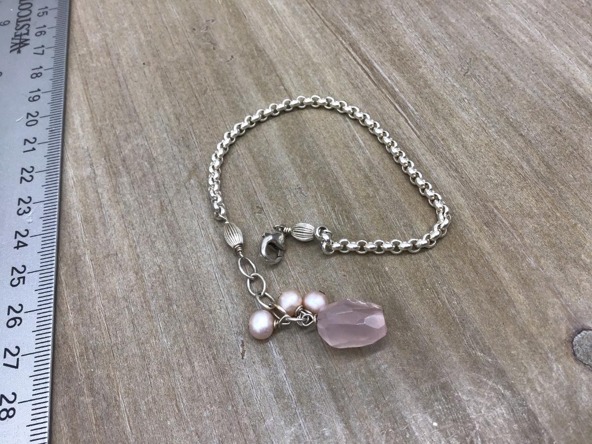 Dainty Silver 925 Bracelet Pearl Quartz