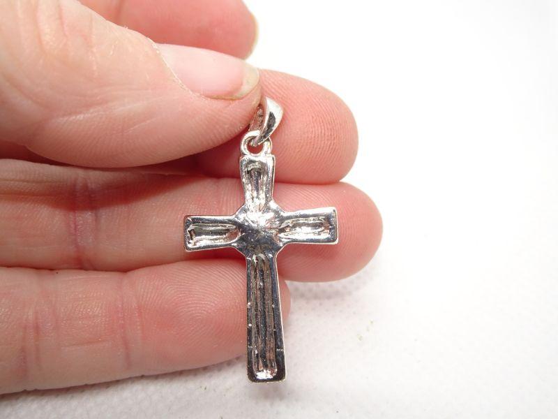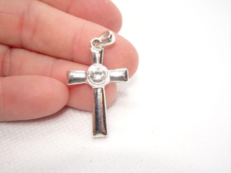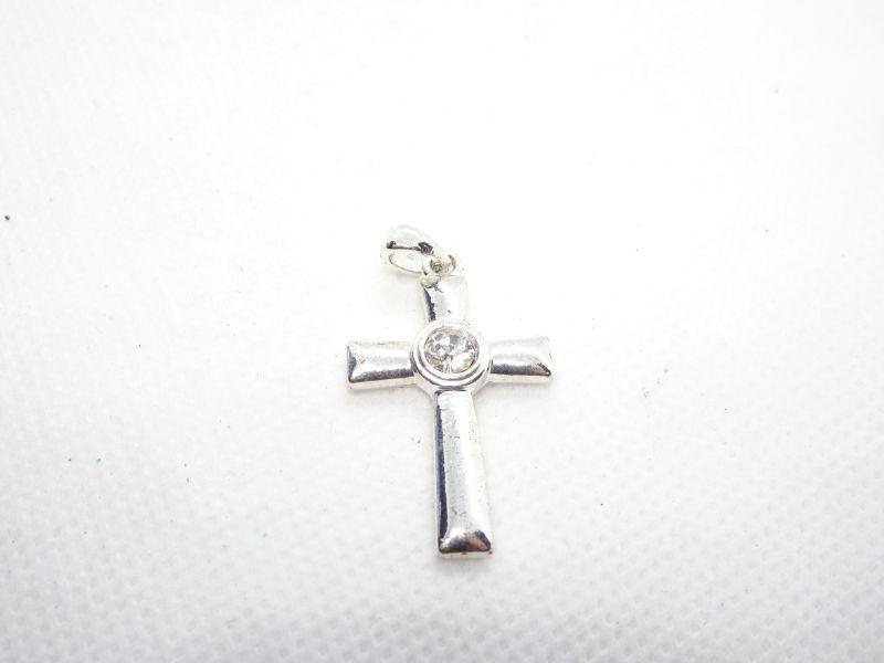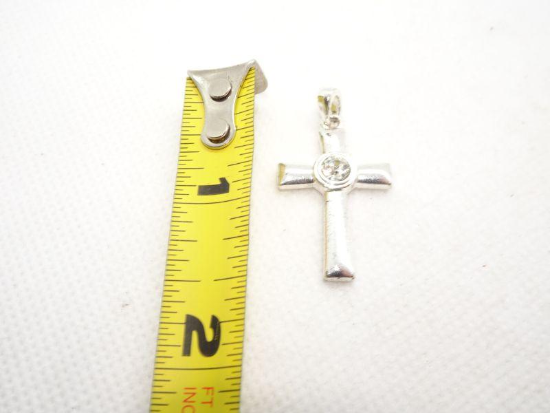 Dainty Silver Tone Center Rhinestone Cross Necklace Pendant