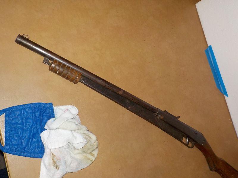 This is an original pump BB gun made in Plymouth MI. and has original wood pump handle and wood butt.