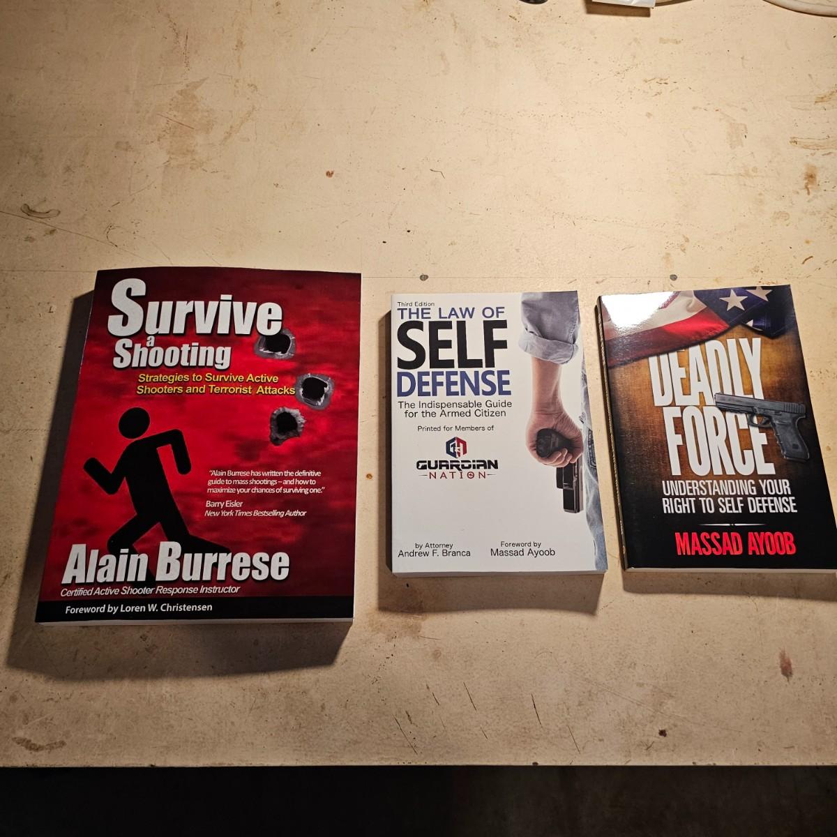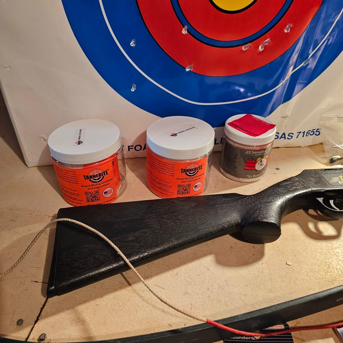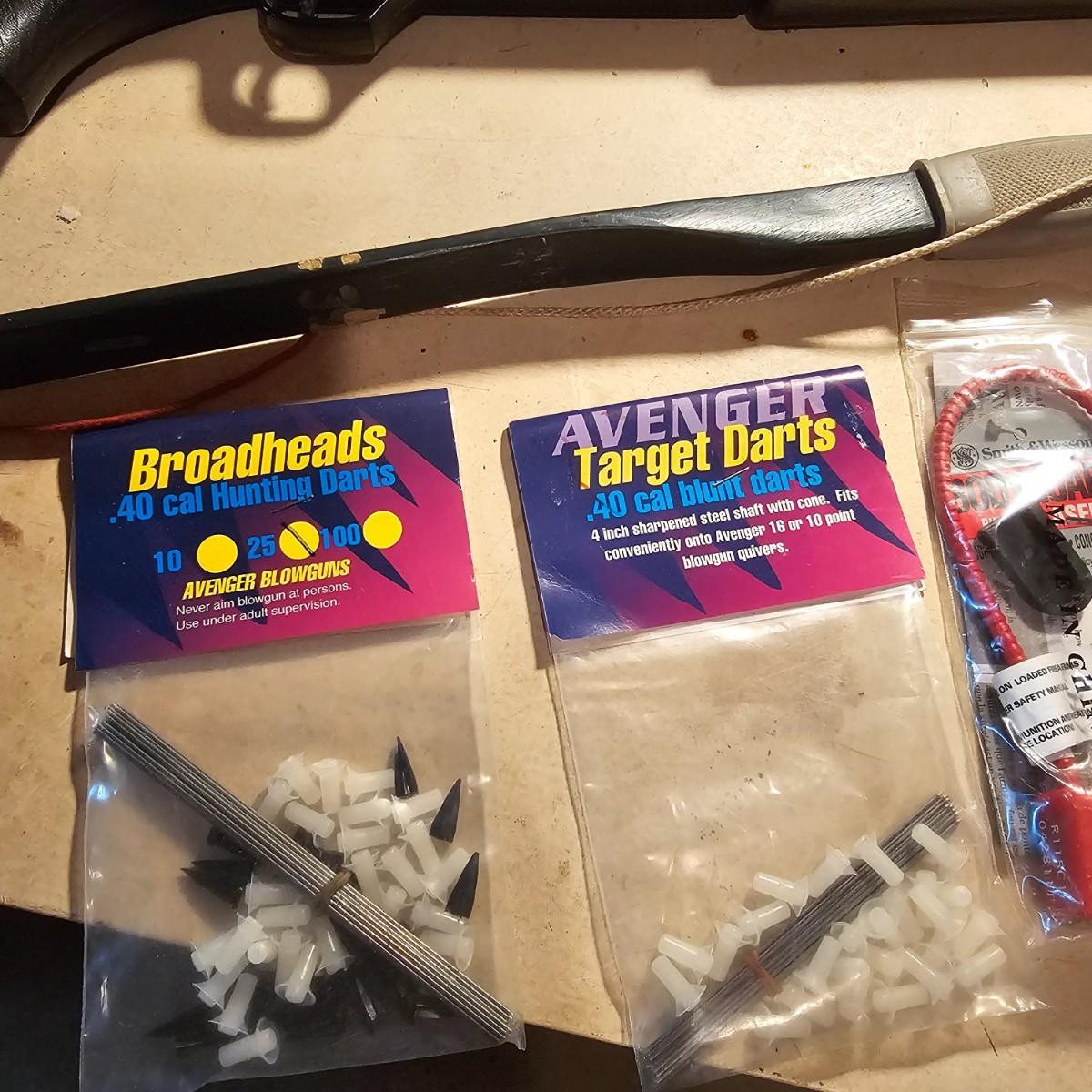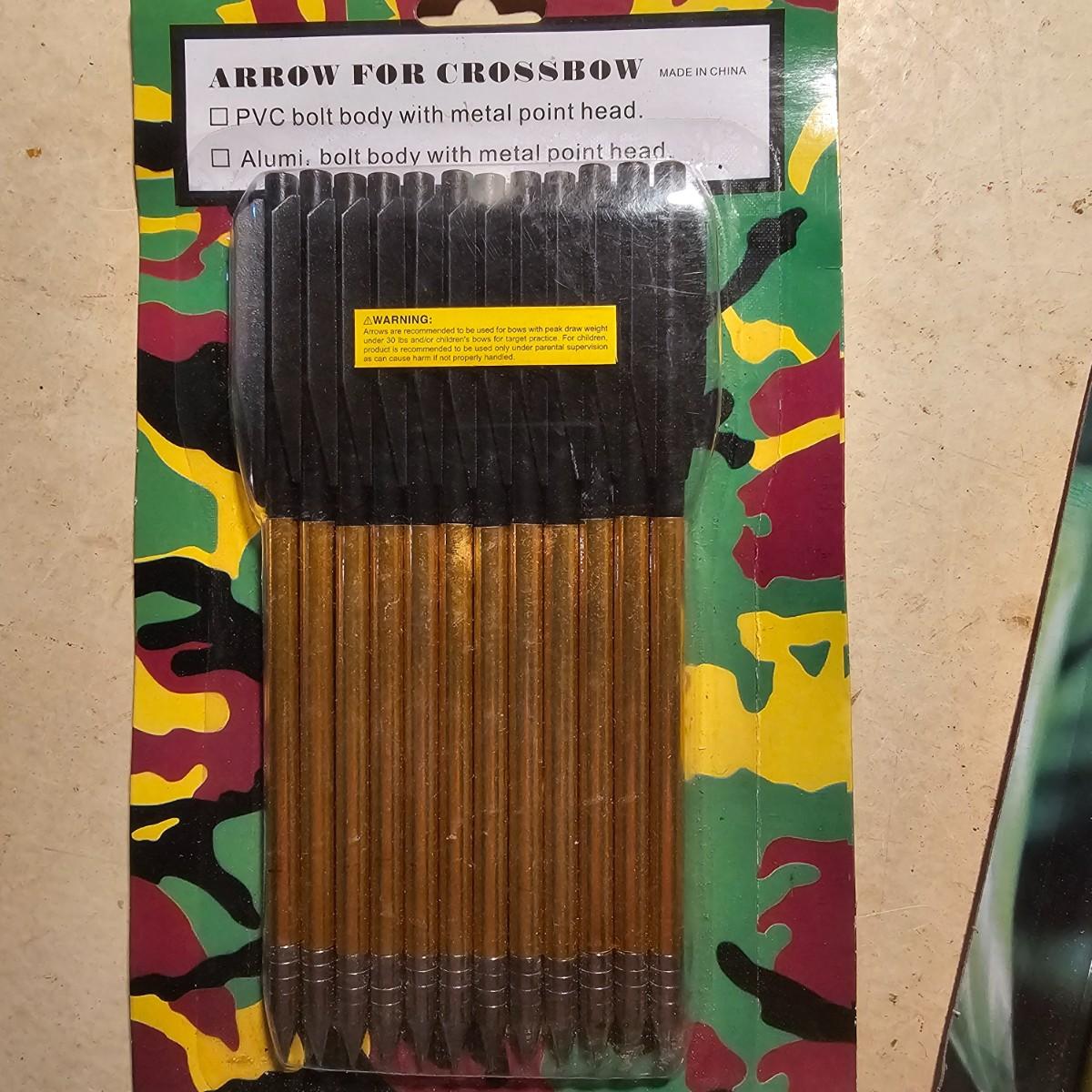 One Daisy Powerline 856 pump pellet gun, .177 caliber. Plastic stock, some discoloring on barrel. Safety button is missing. Shoots pellets and BBs. No ammo included. Also, one 35# pull fiberglass recurve bow w/string and some other archery accessories. Small bolts for a crossbow, some broadhead hunting points and target points. No arrows included. Two pistol locks with keys, three books on self-defense and also three containers to make exploding targets. One 24" x 12" x 24"H foam archery target. See photos for details. Local pickup only.