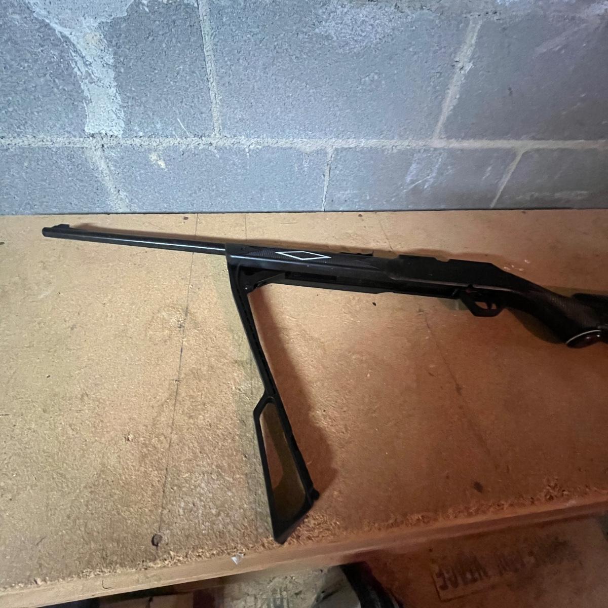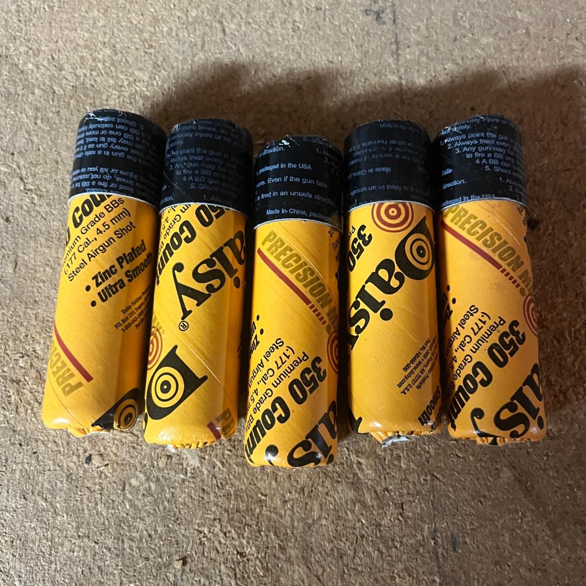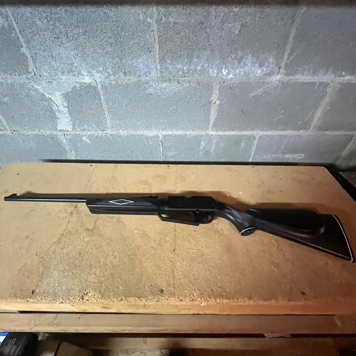Lot includes a Daisy BB and pellet gun with scope. Also includes five packs of BBs, two packs of pellets and four packs of targets. Gun measures 7” x 2.5” x 37” long.