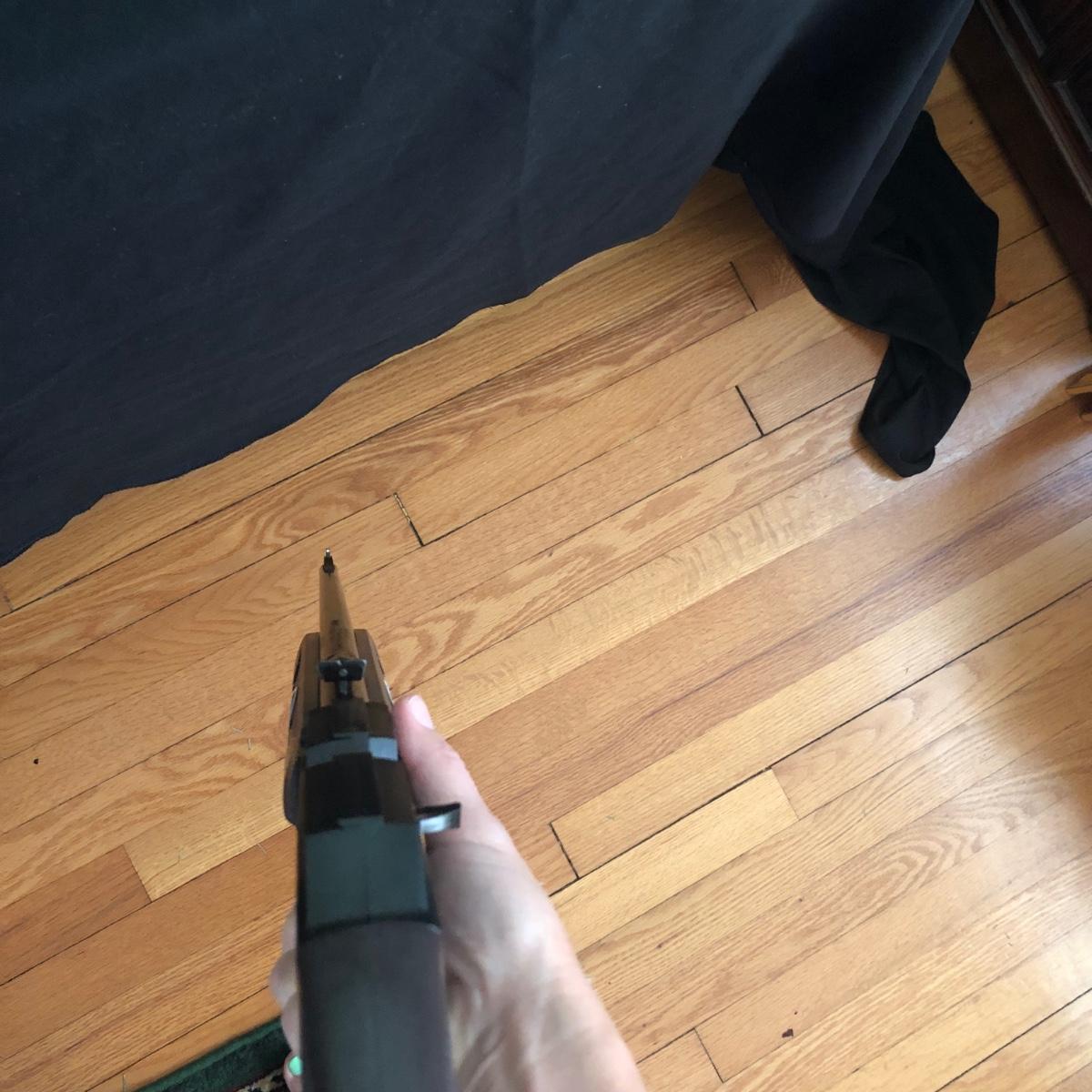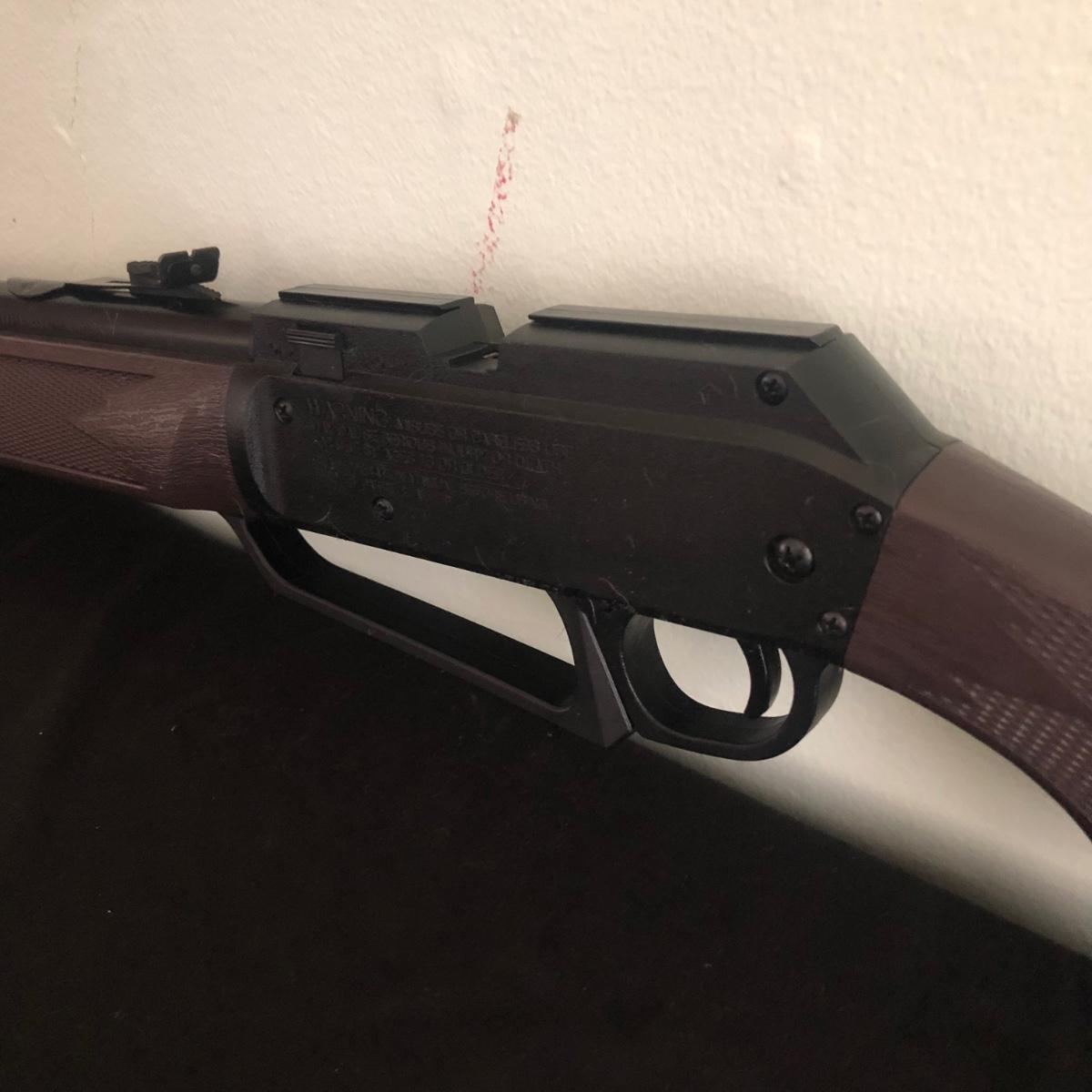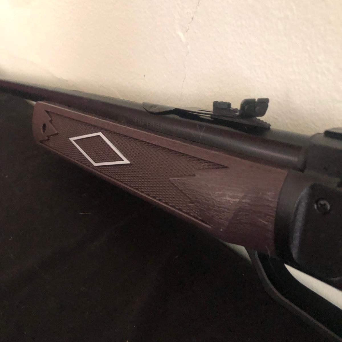 This lot includes one Daisy Gun and a container of Copperhead BBS. The BB gun has a plastic stock and hand grip. The gun is almost 38” long. Local pick up only.