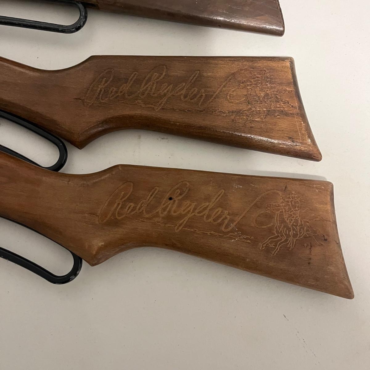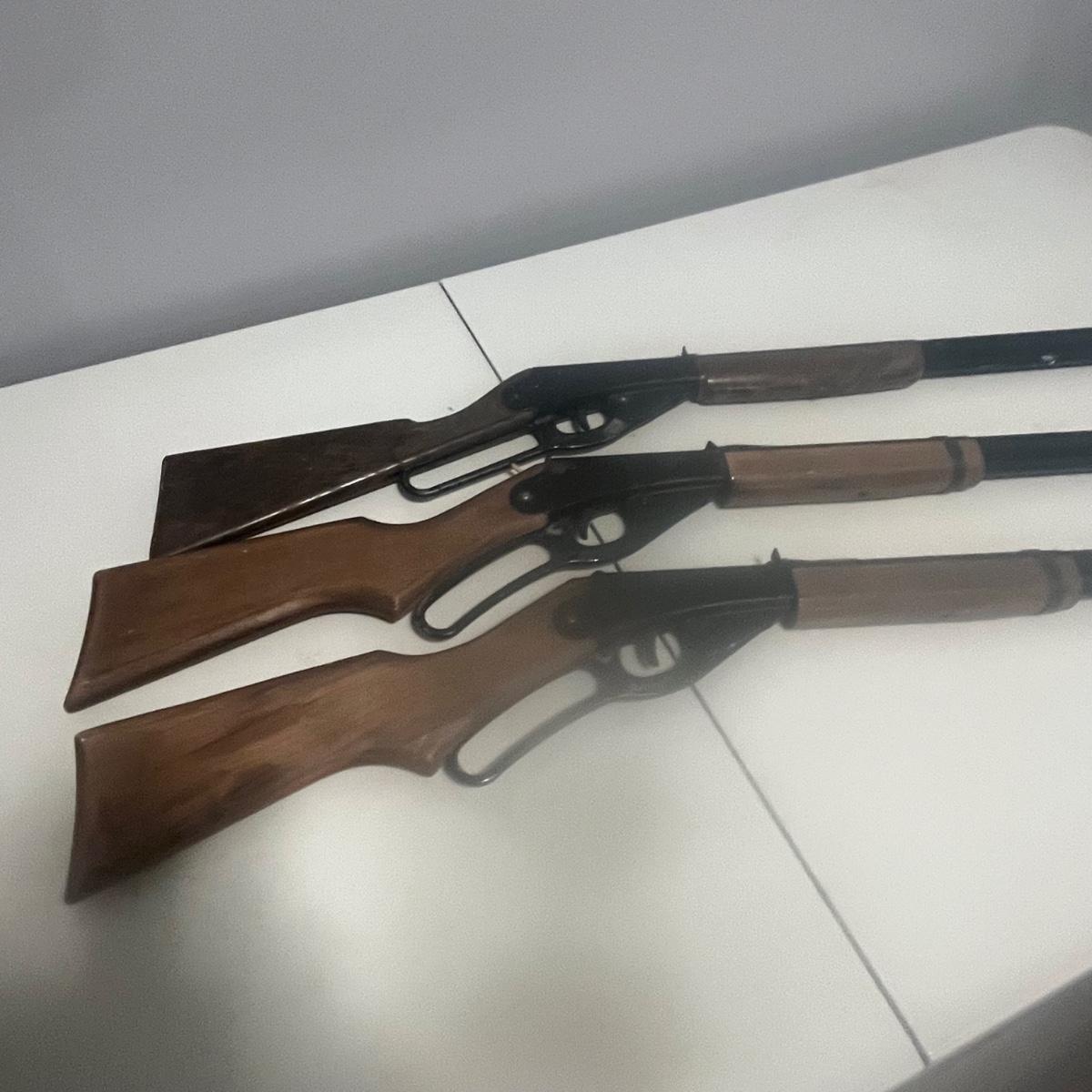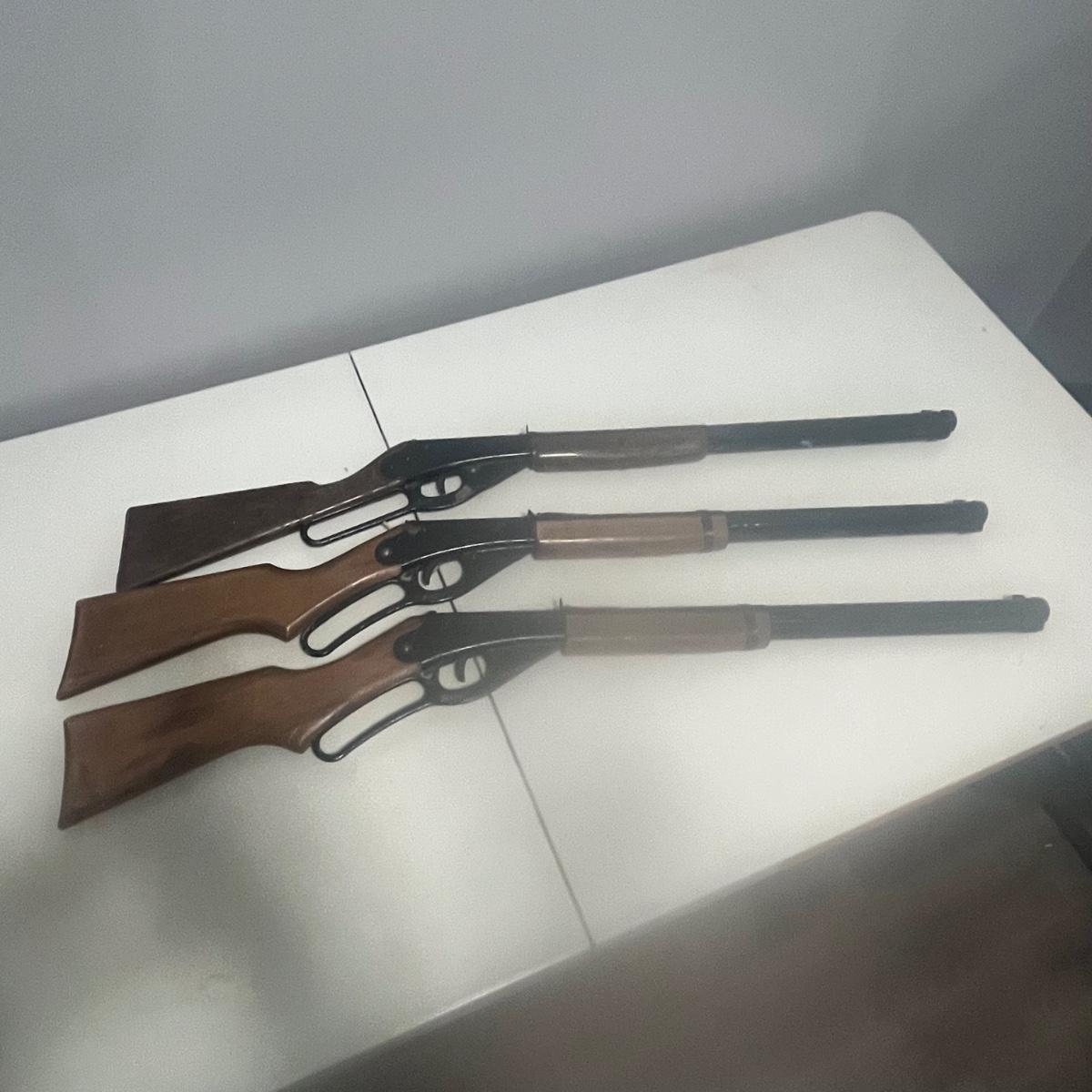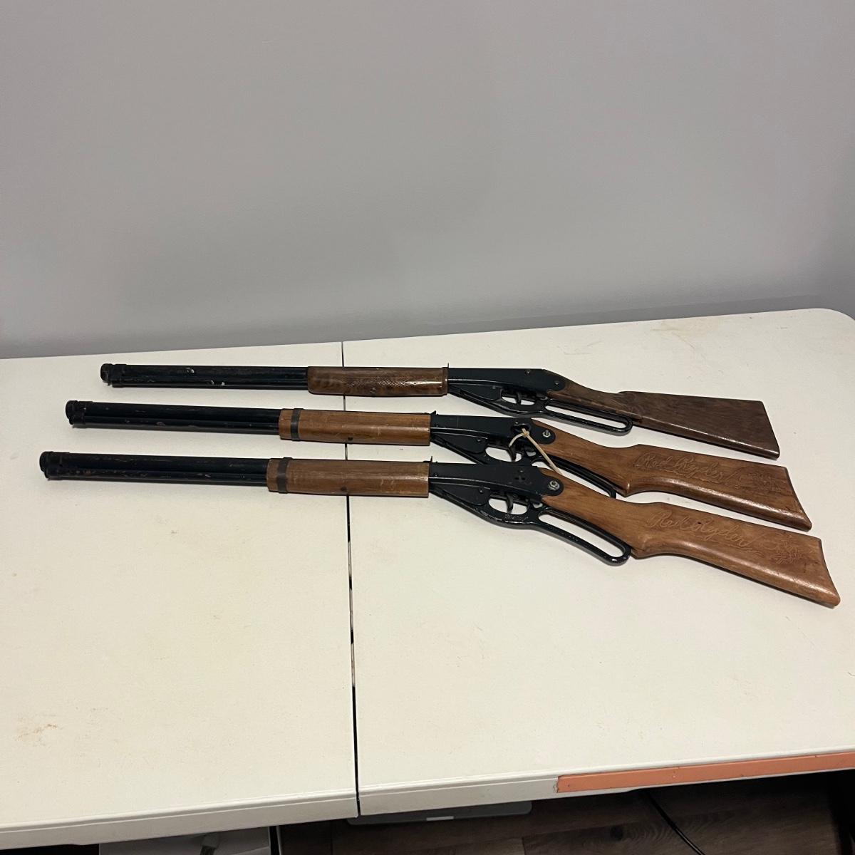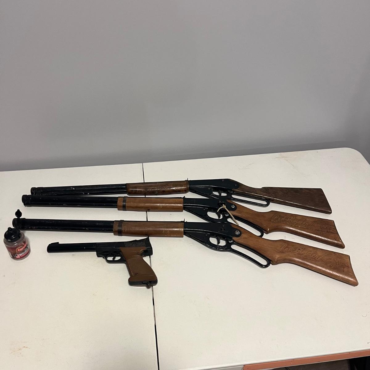 Lot includes two Daisy Red Ryder BB guns, Daisy rifle and a Daisy CO2 pistol.