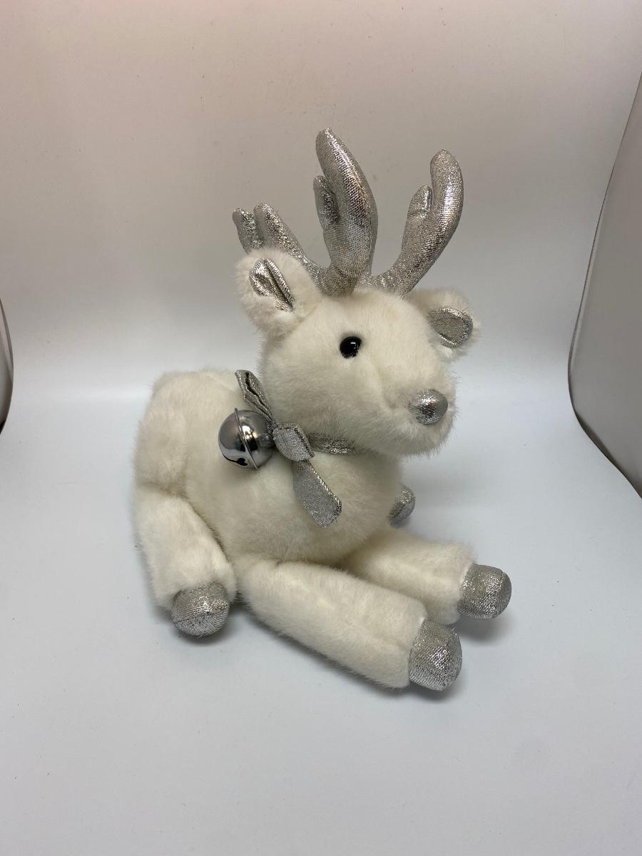 Dakin White and Silver Winter Holiday Plush Stuffed Animal Reindeer