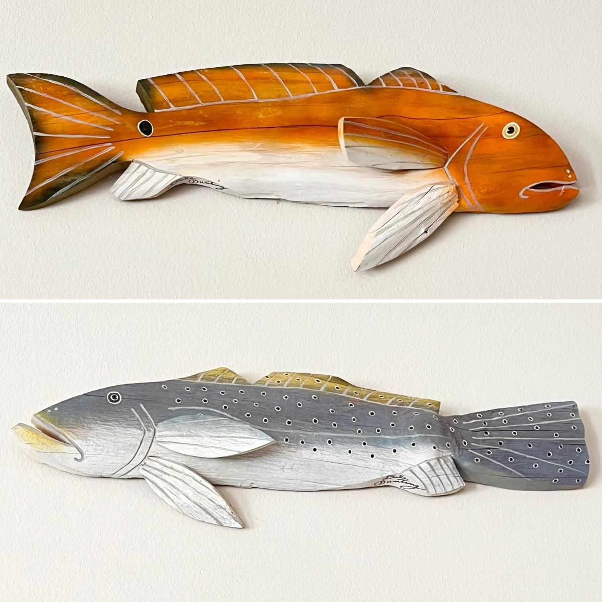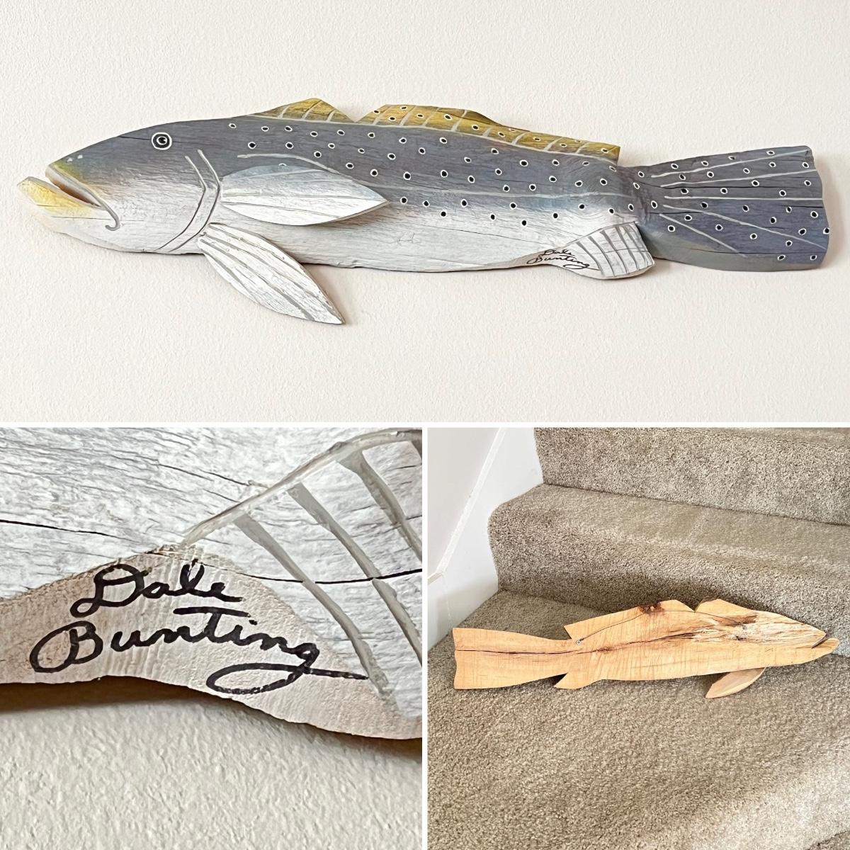 DALE BUNTING ~ Pair (2) Hanging Solid Wood Fish Carvings