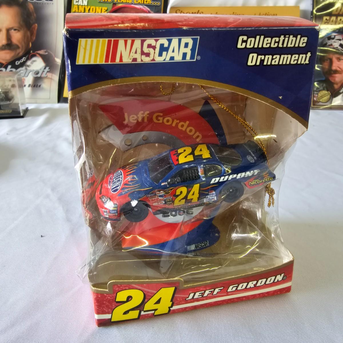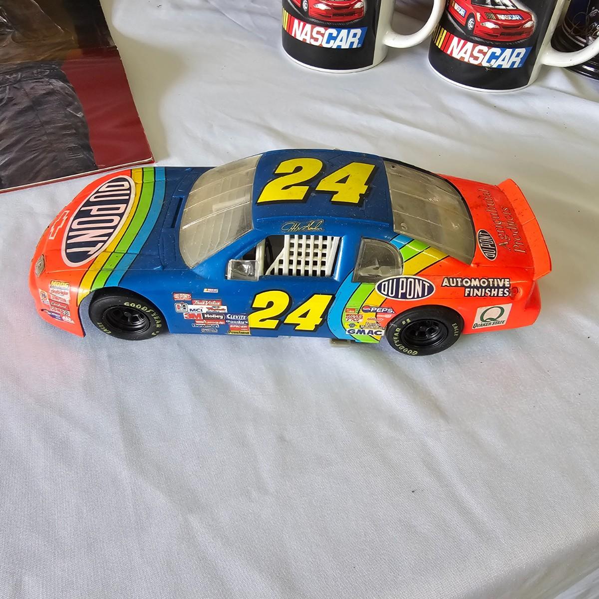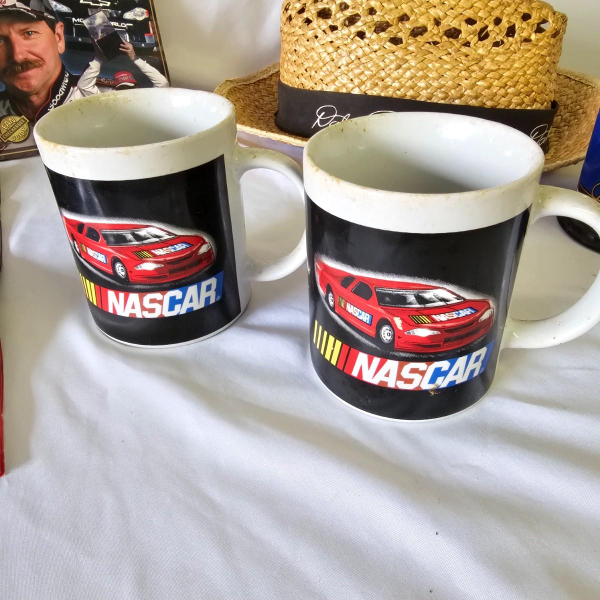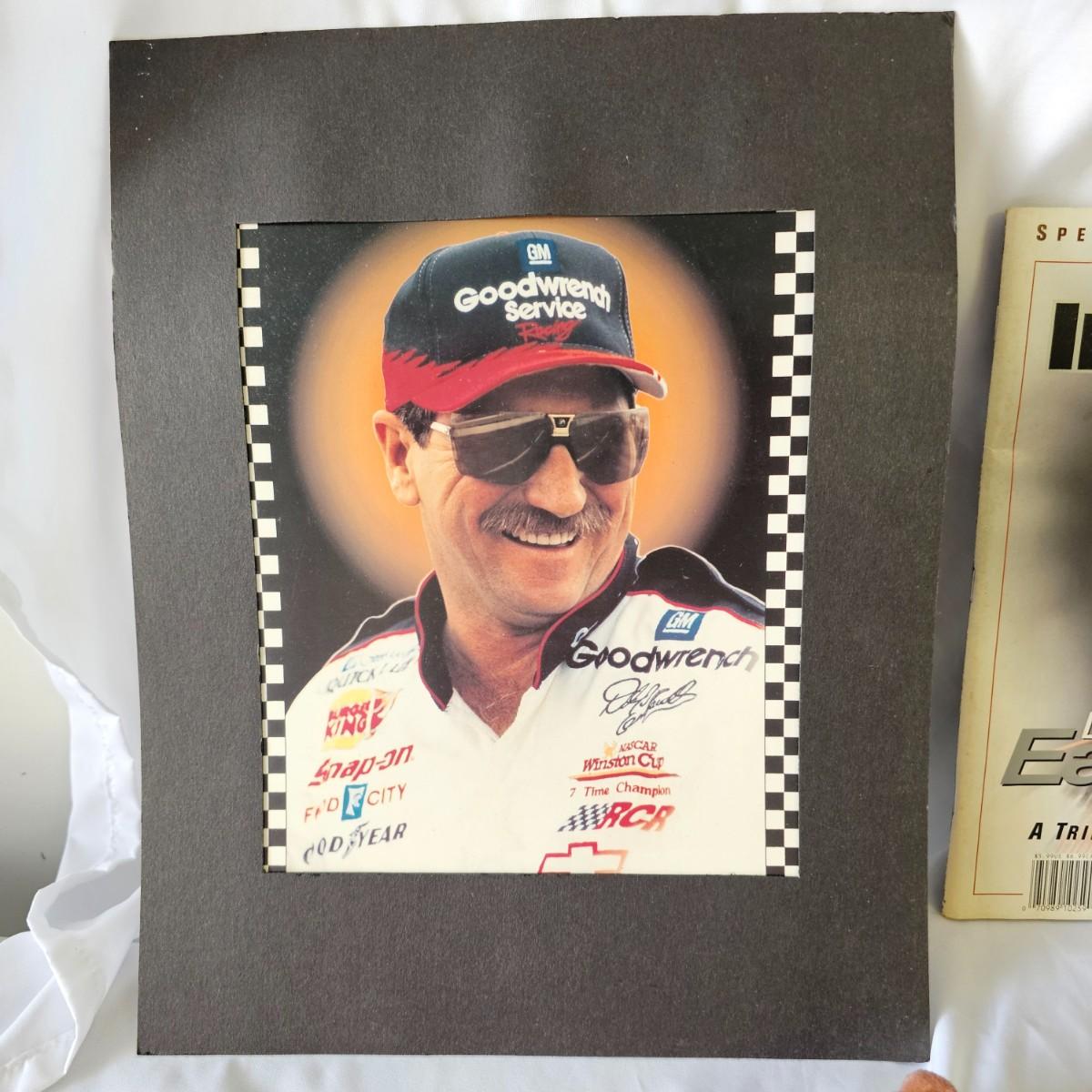 Multiple items honoring Dale Earnhardt and other Nascar drivers. Magazines, pictures, calendar, cups, more. Also some items of Jeff Gordon and Dale Jr. Dale Jr. Poster is 19" x 26". Note one car is missing a wheel. See photos for details. Shipping available.