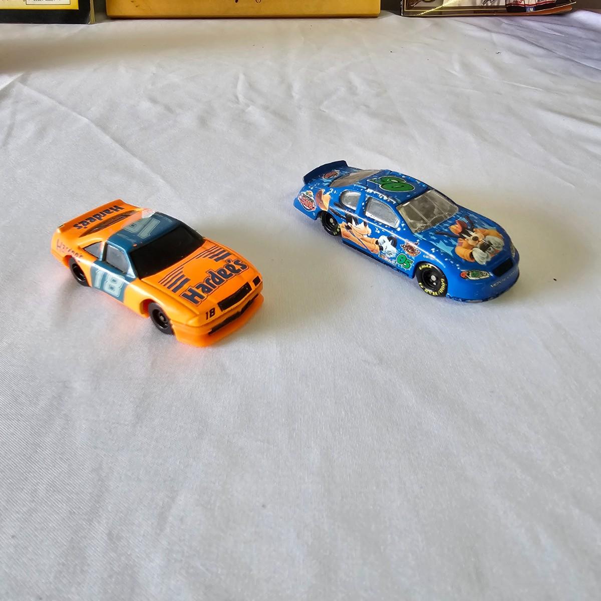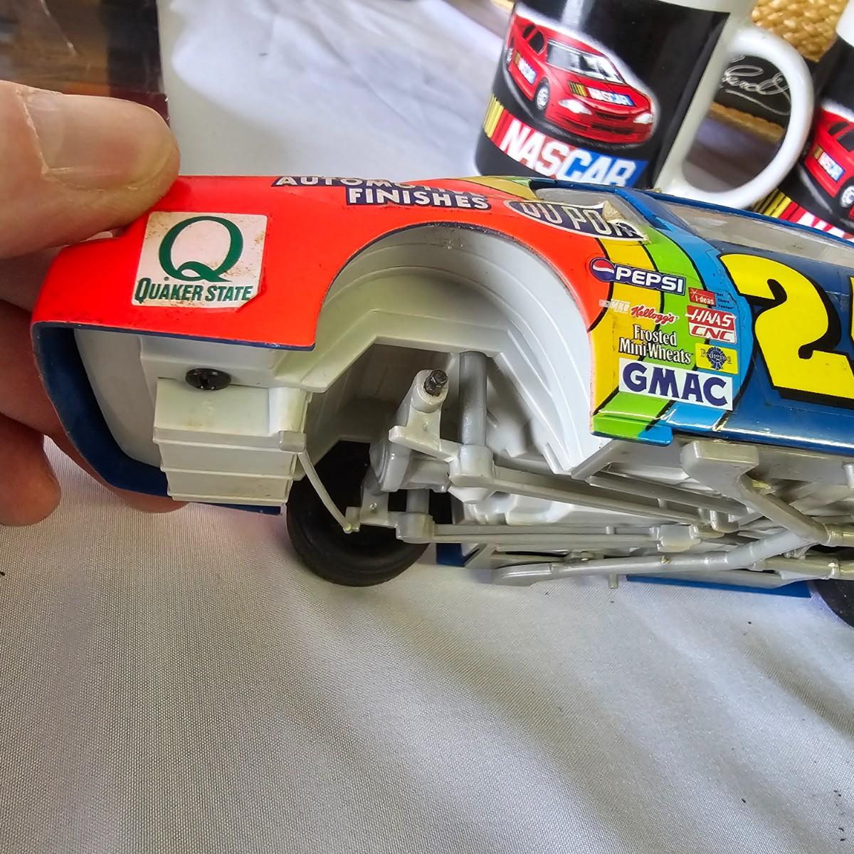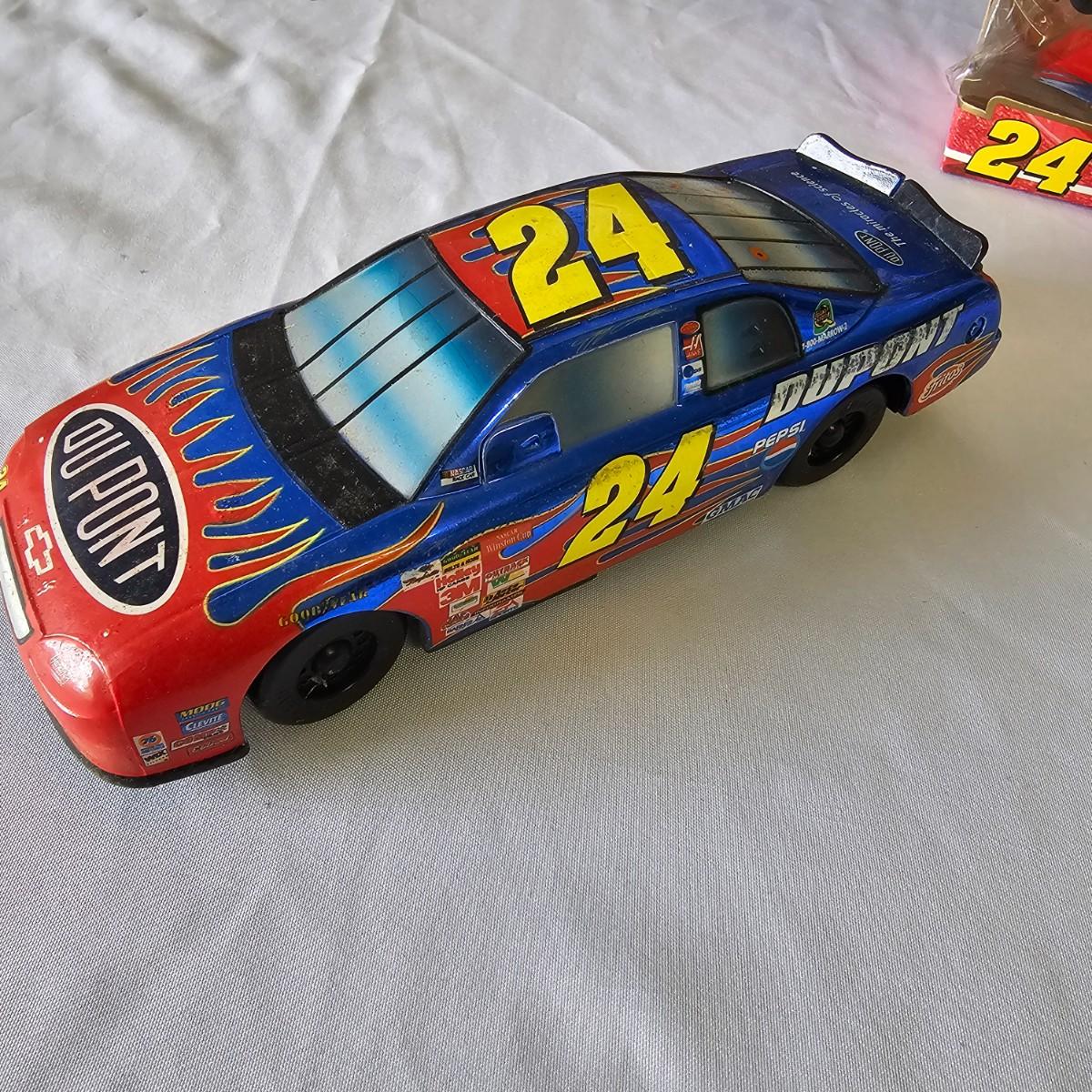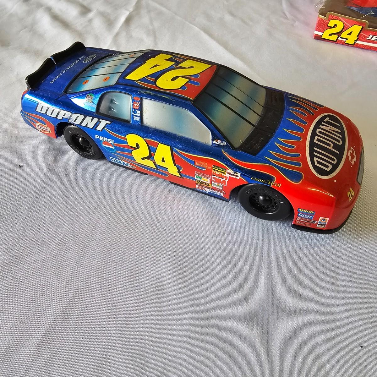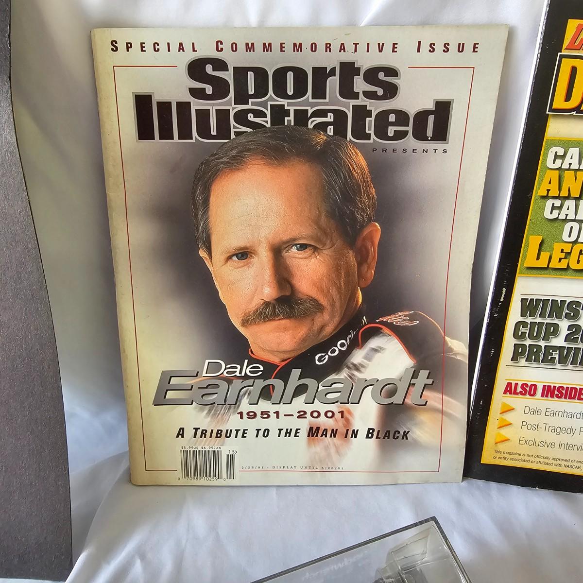 Multiple items honoring Dale Earnhardt and other Nascar drivers. Magazines, pictures, calendar, cups, more. Also some items of Jeff Gordon and Dale Jr. Dale Jr. Poster is 19" x 26". Note one car is missing a wheel. See photos for details. Shipping available.