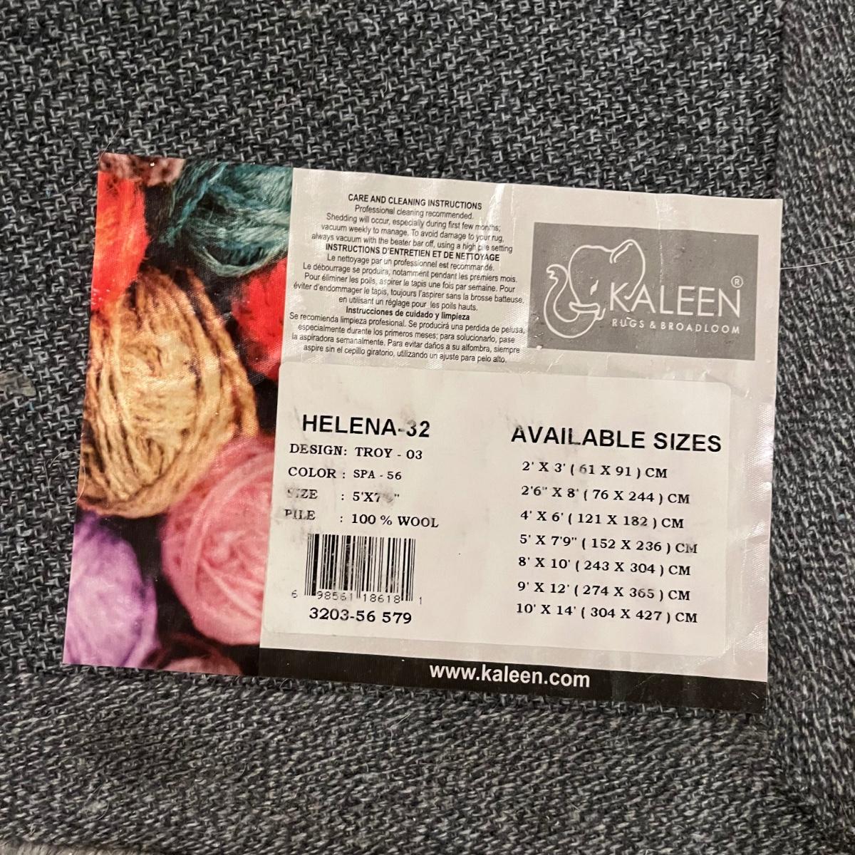 Lot includes a 100% wool area rug in a neutral tone damask style print. Made by Kaleen; from The Helena Collection. Comes with pad. Rug measures 5’ x 7’ 9”. Local Pickup Only. Winning bidder must bring assistance to help move and load this item due to its weight and/or size.