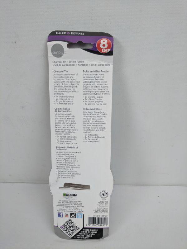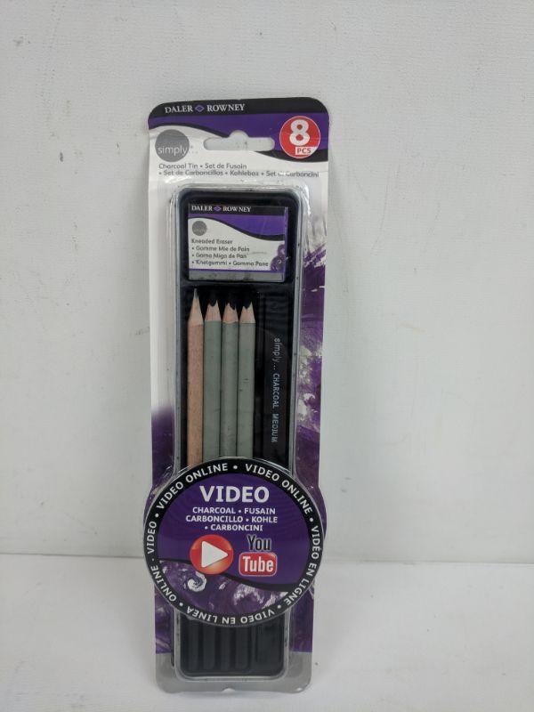 Daler Rowney Charcoal Tin: Charcoal Pencils, Graphite Pencil, 1 eraser - New