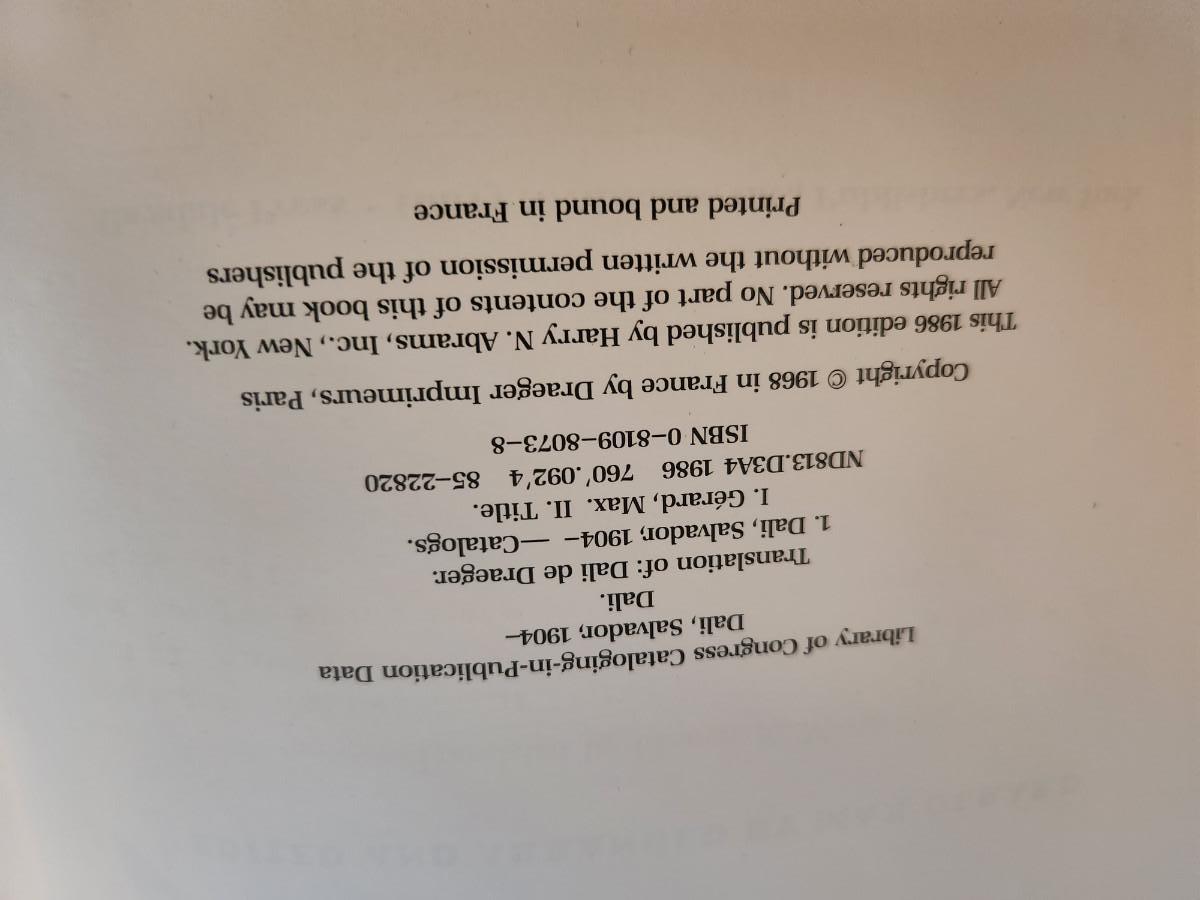 This lot is for a copy of Dali, a beautiful coffee table book. This large and heavy book has page after page of pictures and information of one of the worlds most recognized artist. In good condition for its age.